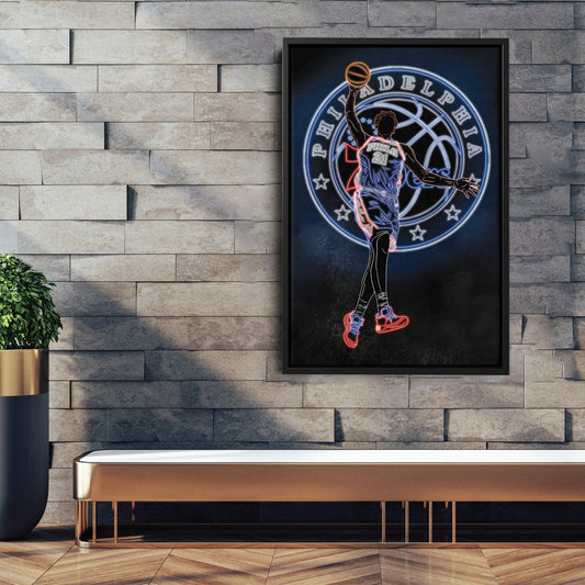 Joel Embiid Neon Canvas Art | Modern Wall Decor for 76ers Fans