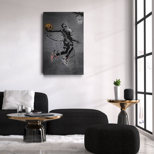 Lebron James Dunk Neon Canvas Art | Modern Wall Decor for Heat Fans