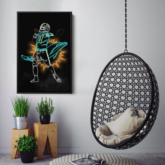 Tua Tagovailoa Neon Canvas Art | Modern Wall Decor for Dolphins Fans