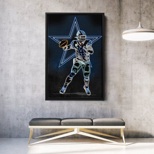Dak Prescott Neon Canvas Art | Cowboys Wall Decor