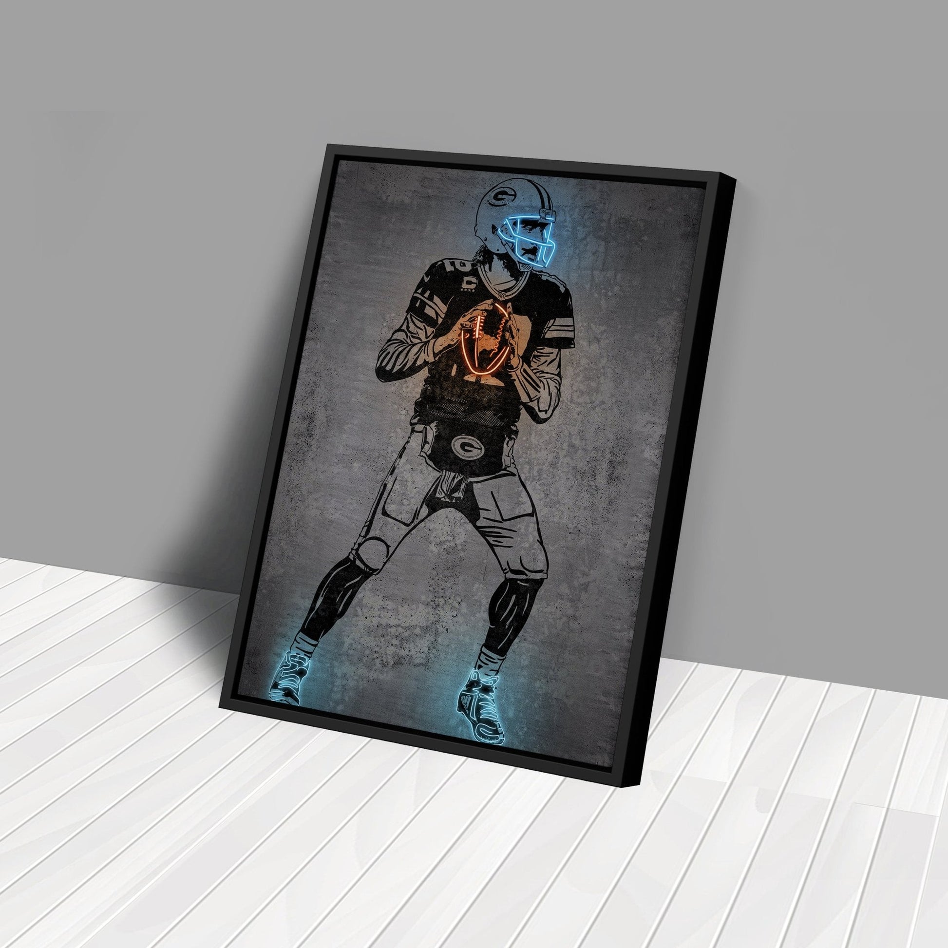 Aaron Rodgers Neon Canvas Art | Modern Wall Decor for Packers Fans