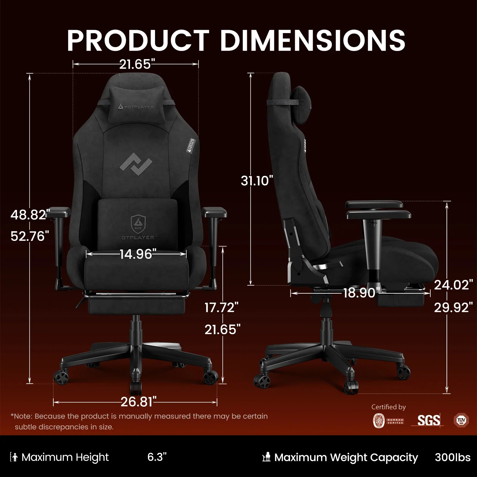 *Note: Because the product is manually measured there may be certain