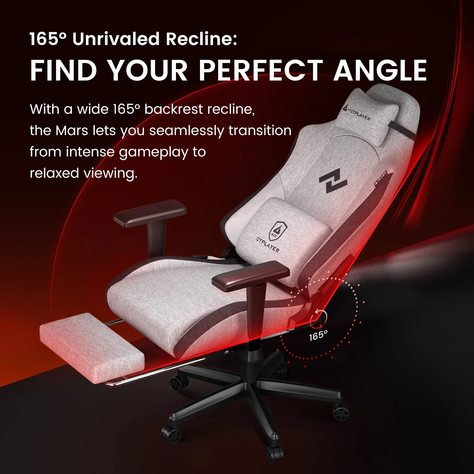 With a wide 165° backrest recline, the Mars lets you seamlessly transition from