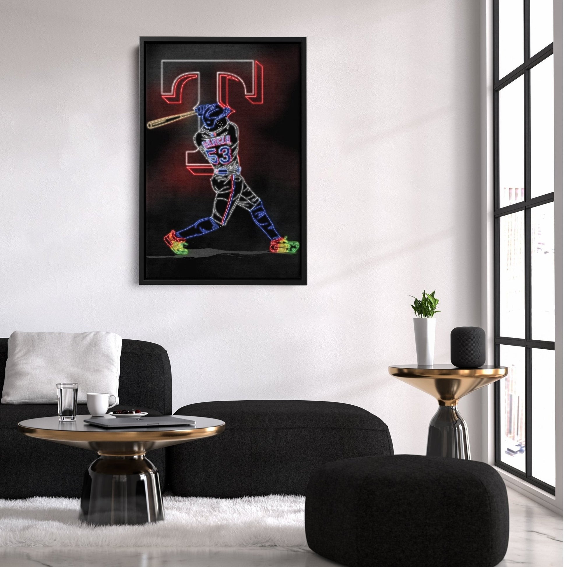 Celebrate the power and skill of Adolis Garcia with this striking Texas Rangers Neon Canvas Art. Designed for true baseball fans, this artwork captures the energy of the game with vibrant neon-inspired details. Printed on 420gsm matte canvas, it delivers stunning clarity and durability, making it the perfect addition to your home or office decor.