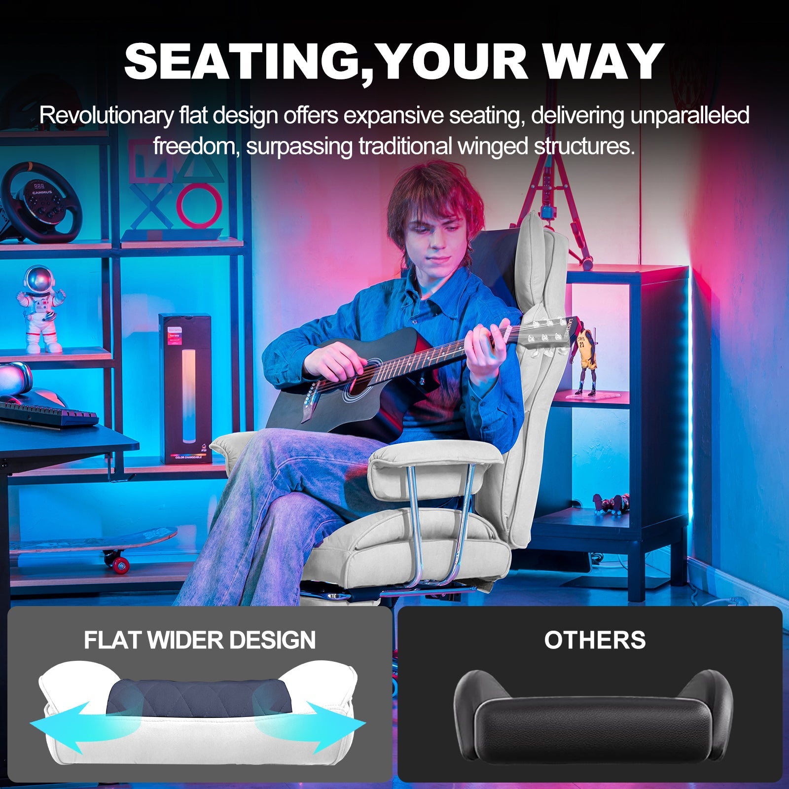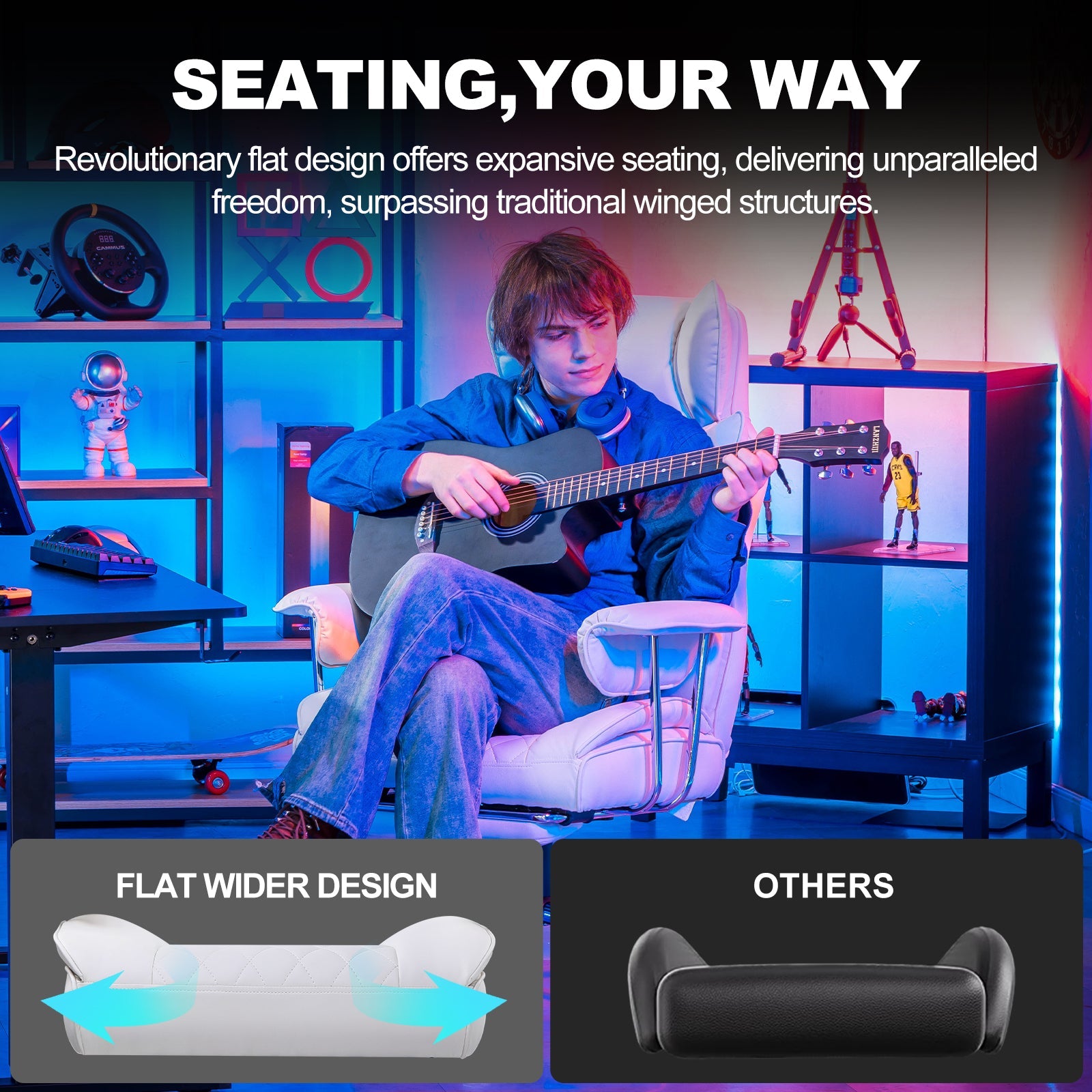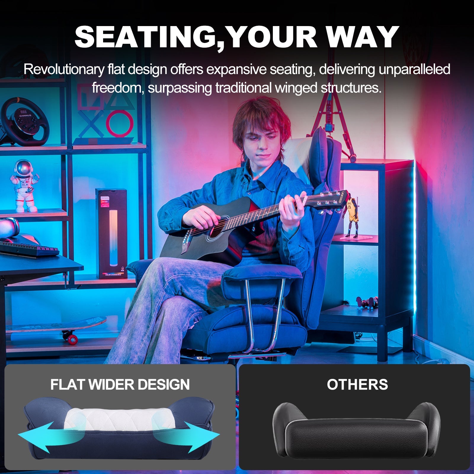 In order to increase the actual seating area and reduce the pressure of the wings on the thighs, we specifically designed the seat cushion of this series of gaming chairs to be a flat seat cushion.