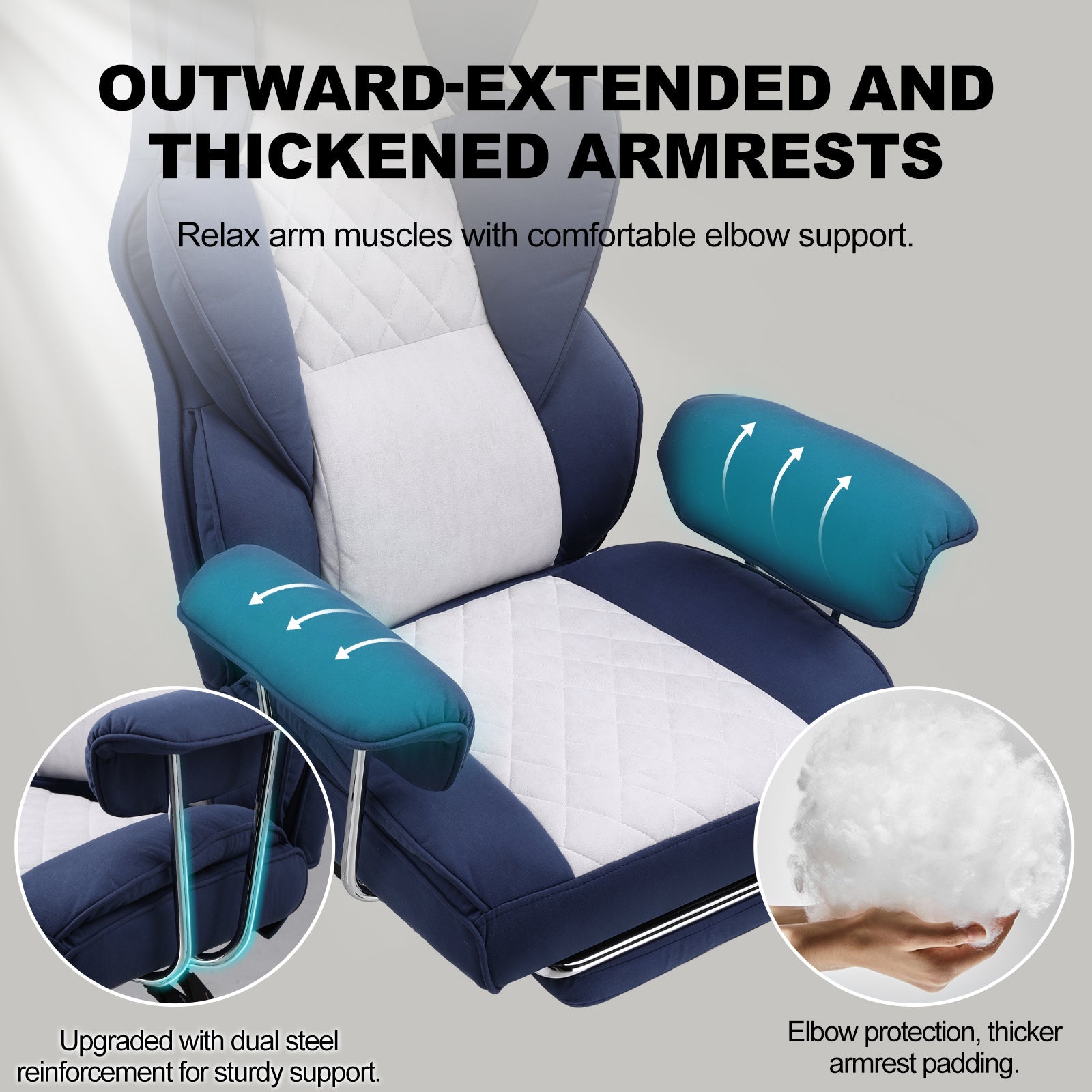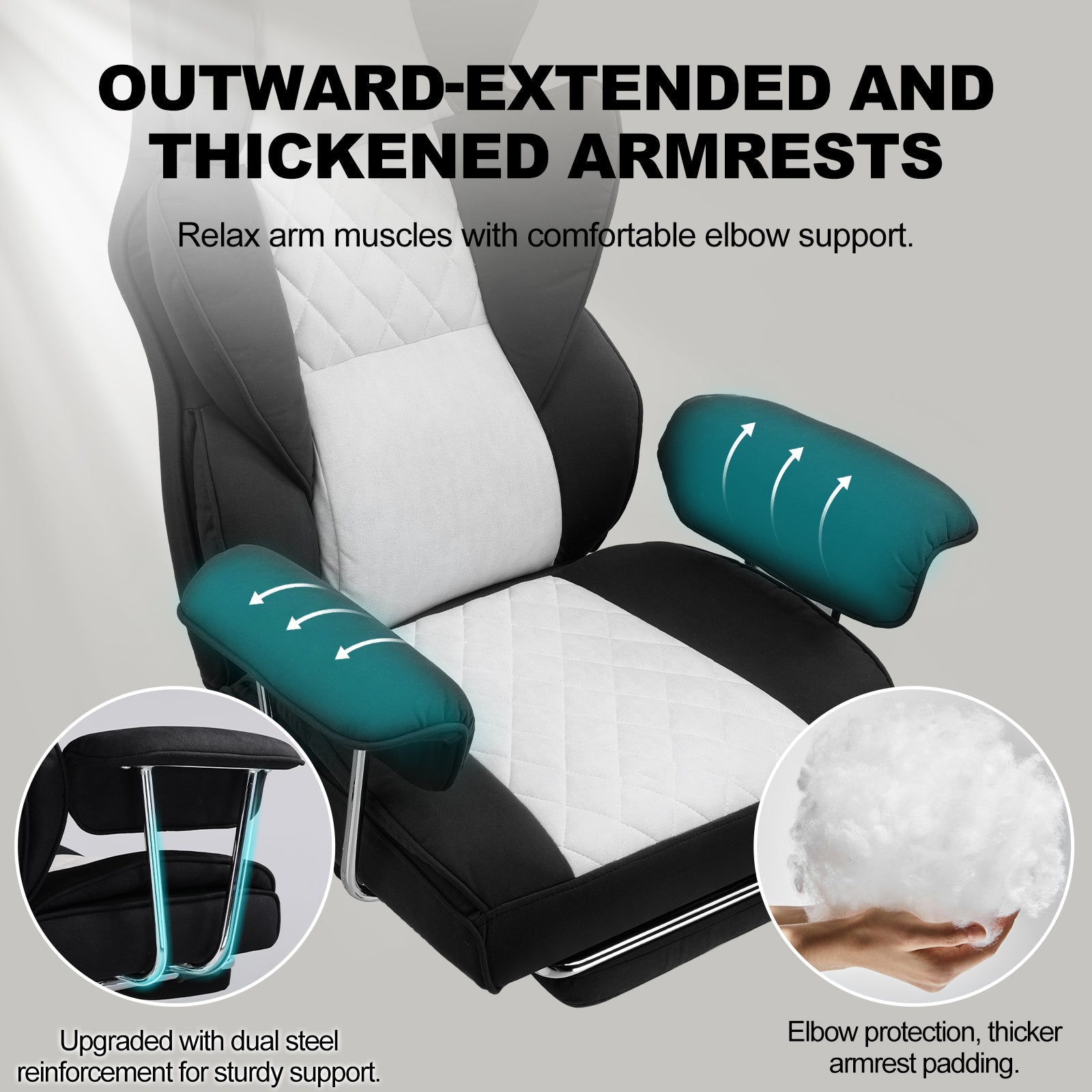 Upgraded dual steel reinforcement provides stable support, protecting the elbows, while the thickened padding on the armrests relaxes arm muscles, offering comfortable elbow support.