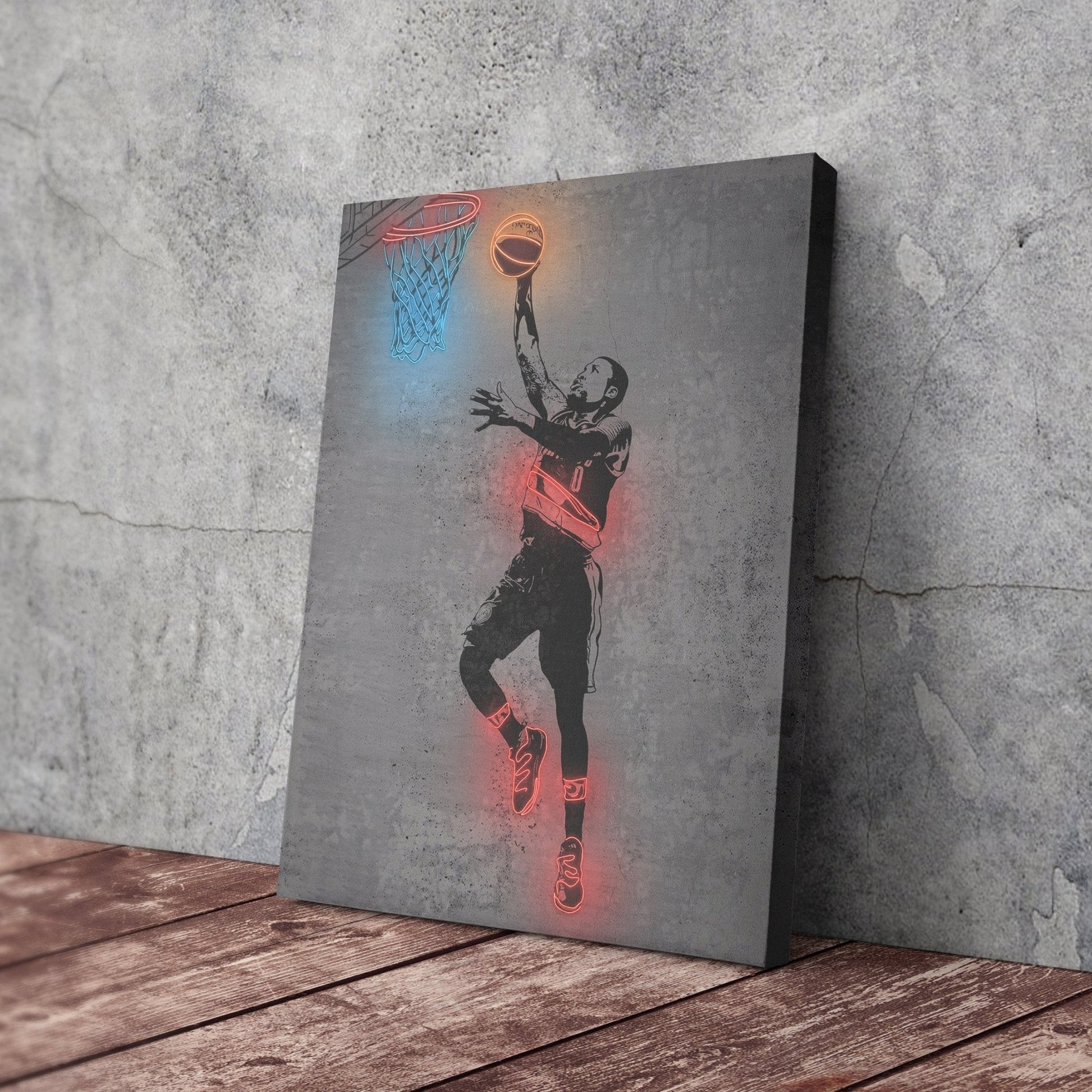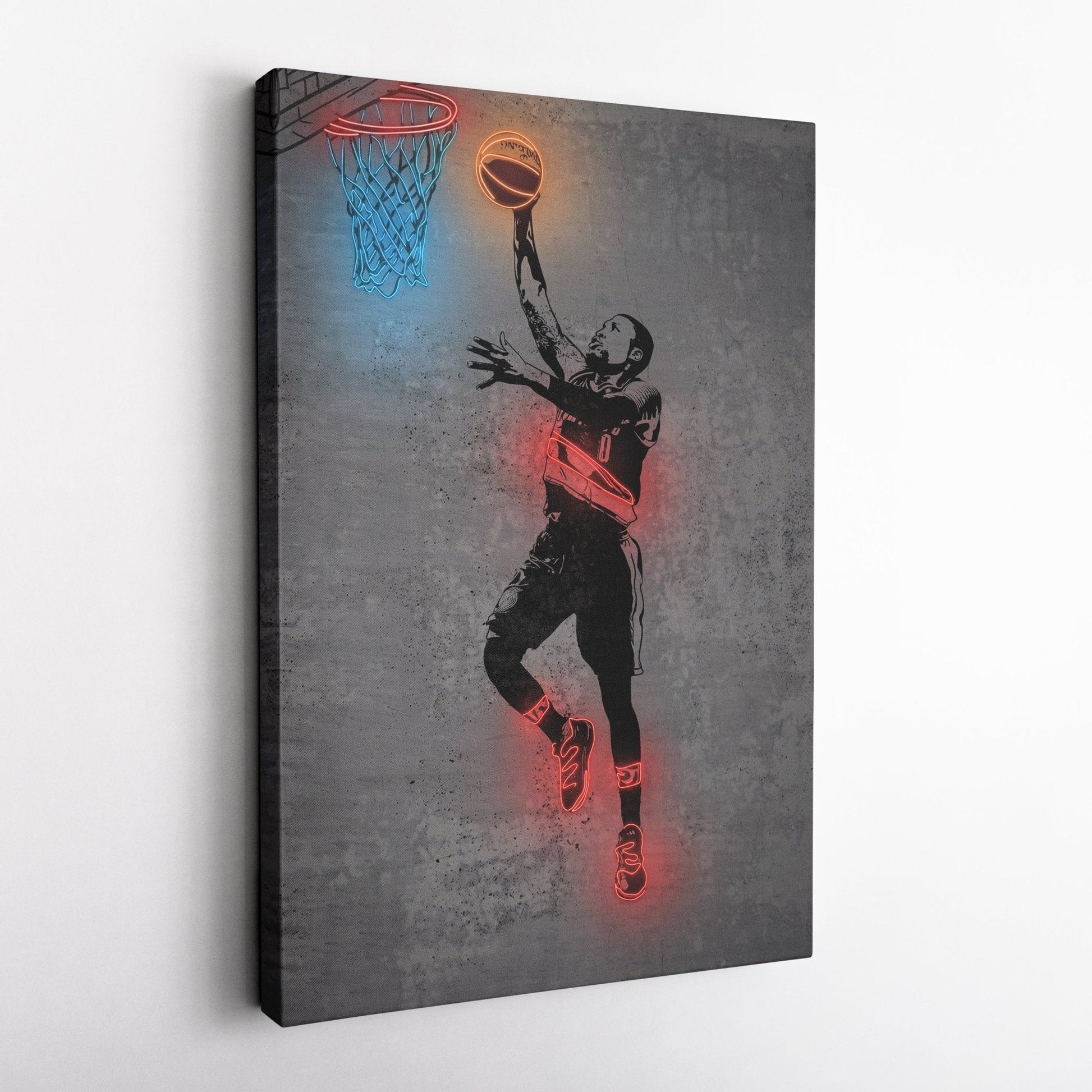Damian Lillard Neon Canvas Art | Modern Wall Decor for Blazers Fans