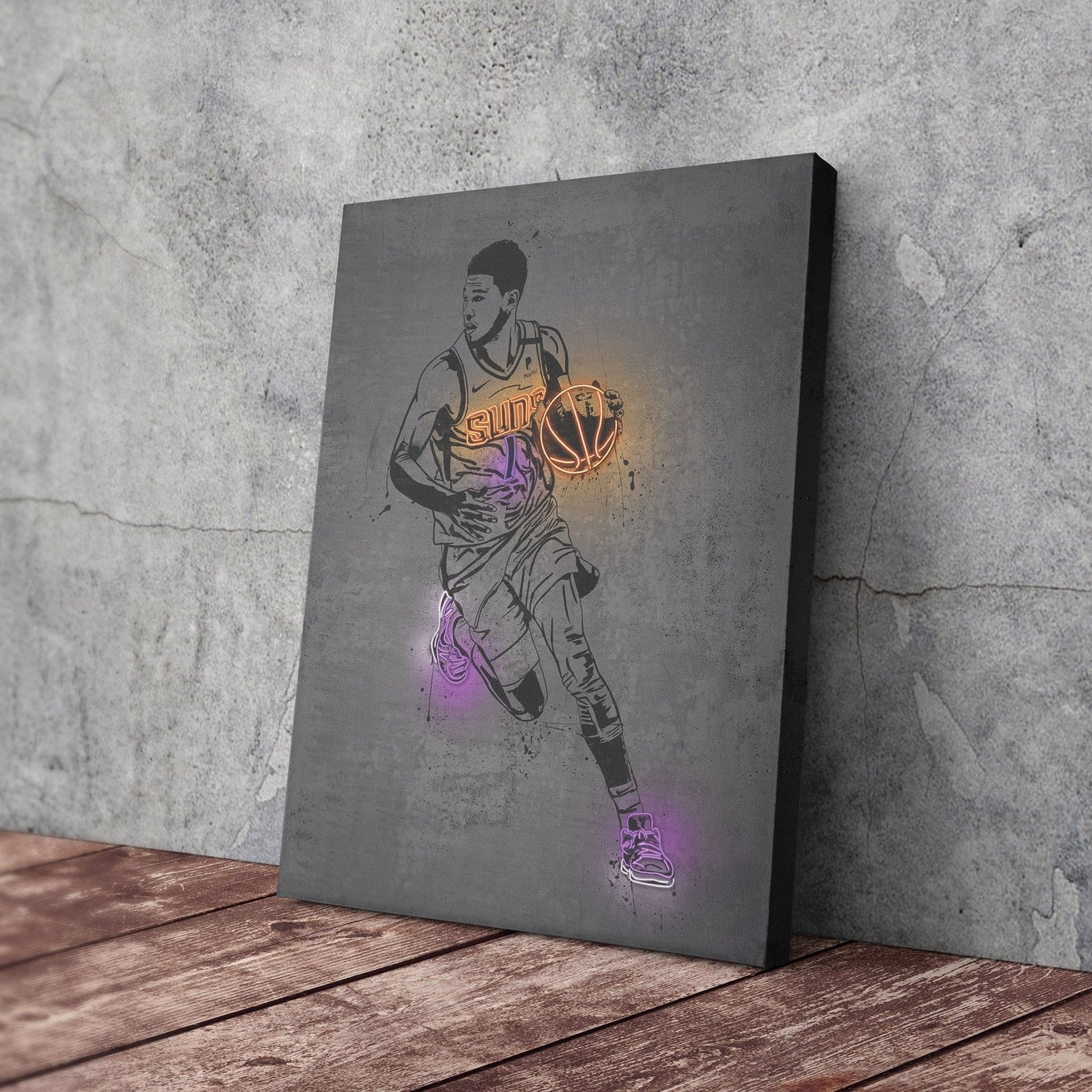 Devin Booker Neon Canvas Art | Modern Wall Decor for Suns Fans
