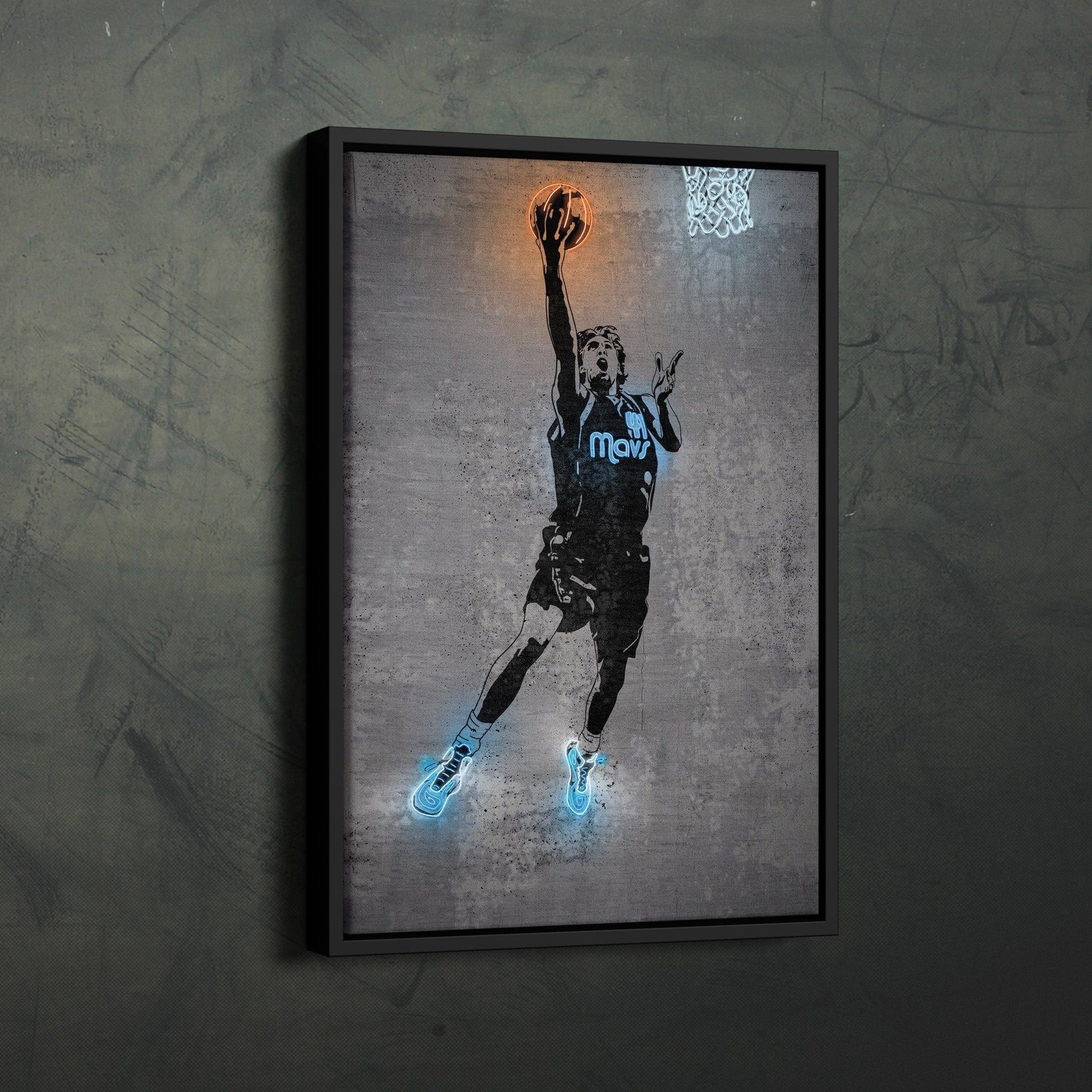 Dirk Nowitzki Neon Canvas Art | Modern Wall Decor for Mavericks Fans
