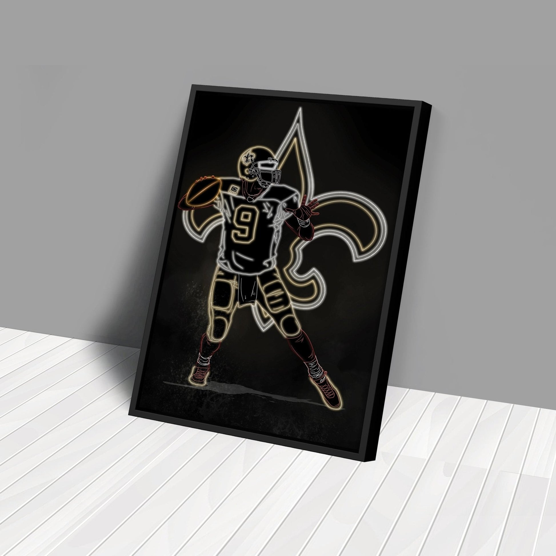 Drew Brees Neon Canvas Art | Saints Wall Decor