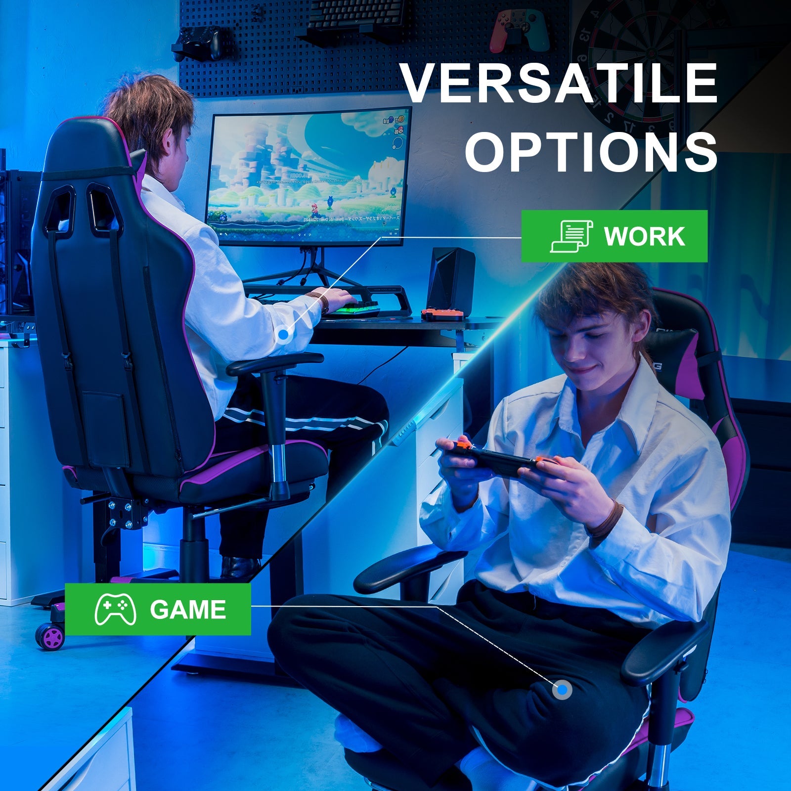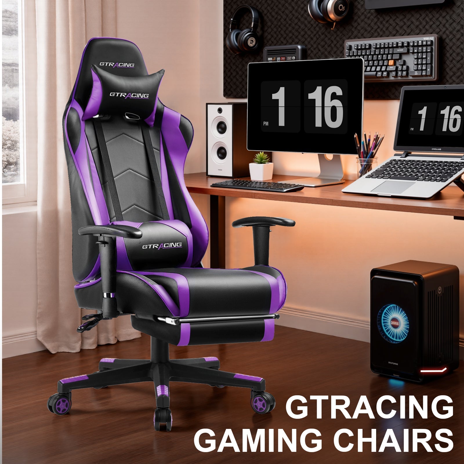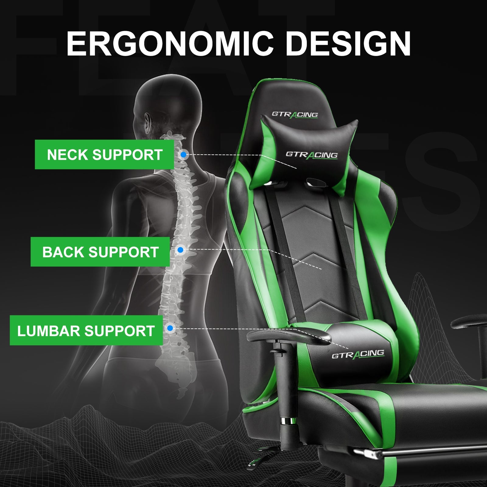 GTRACING gaming chair is your ideal choice for working, studying, and gaming. The GTRACING 099 Footrest series with ergonomic design is one of the classical series among our products. With a footresr ,adjustable headrest and lumbar pillow, it comforts both the cervical and lumbar spine. The racing-style angle adjustor helps you enjoy reclining and rocking at the same time. Seat cushion and chair back full of high-density sponge keep you comfortable after day-long sitting. The ergonomic design and high-quality material make GTRACING chairs perfect for both home and modern offices.