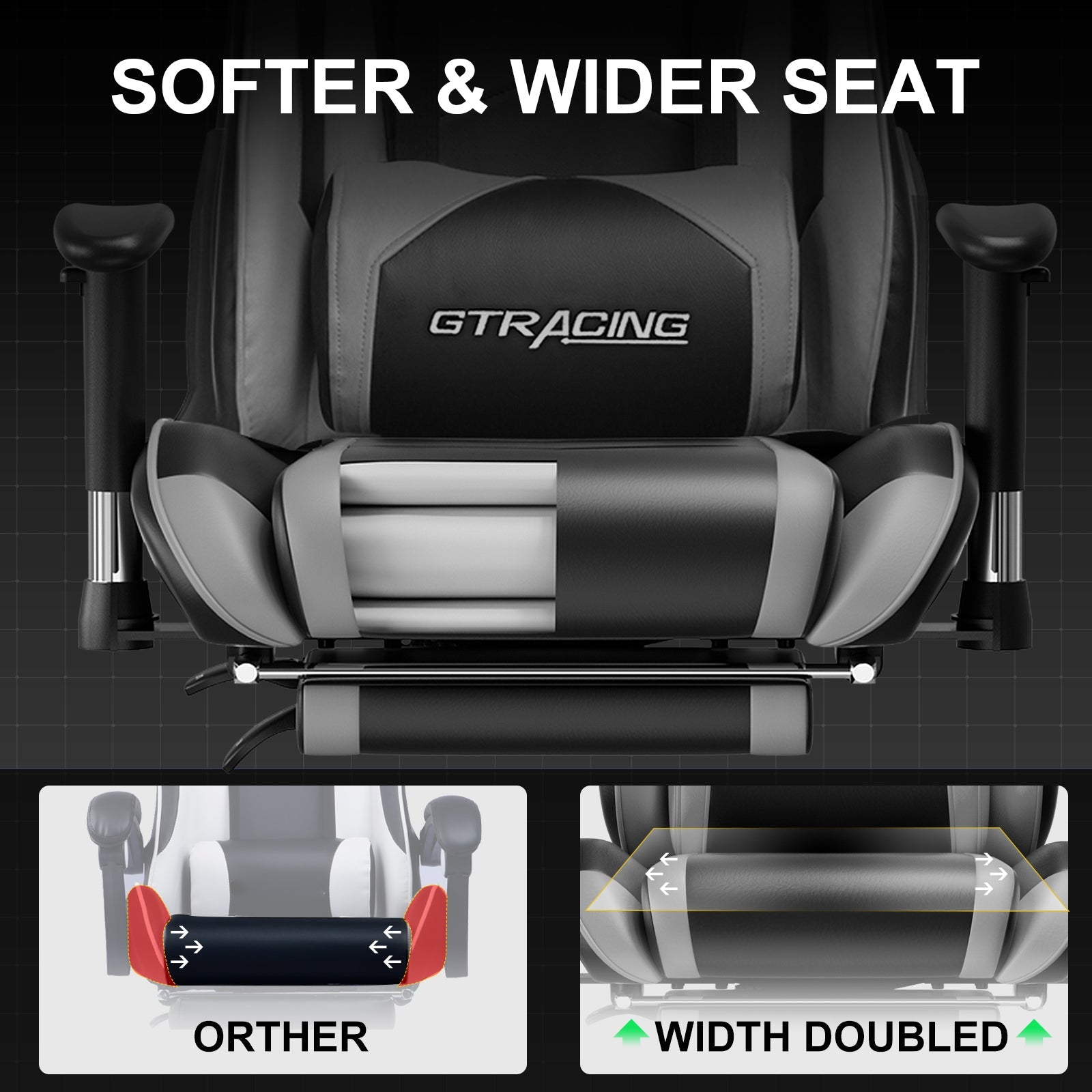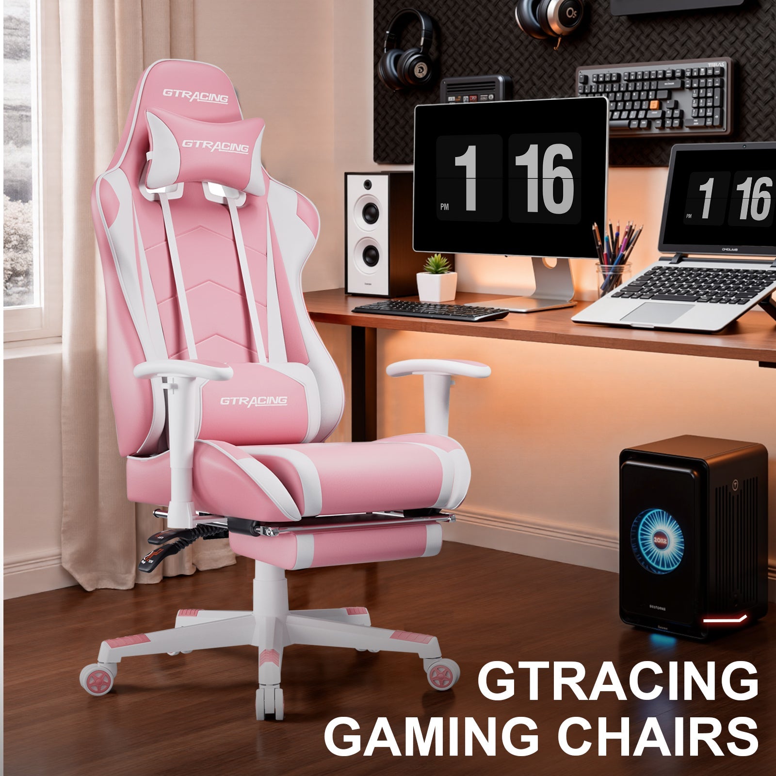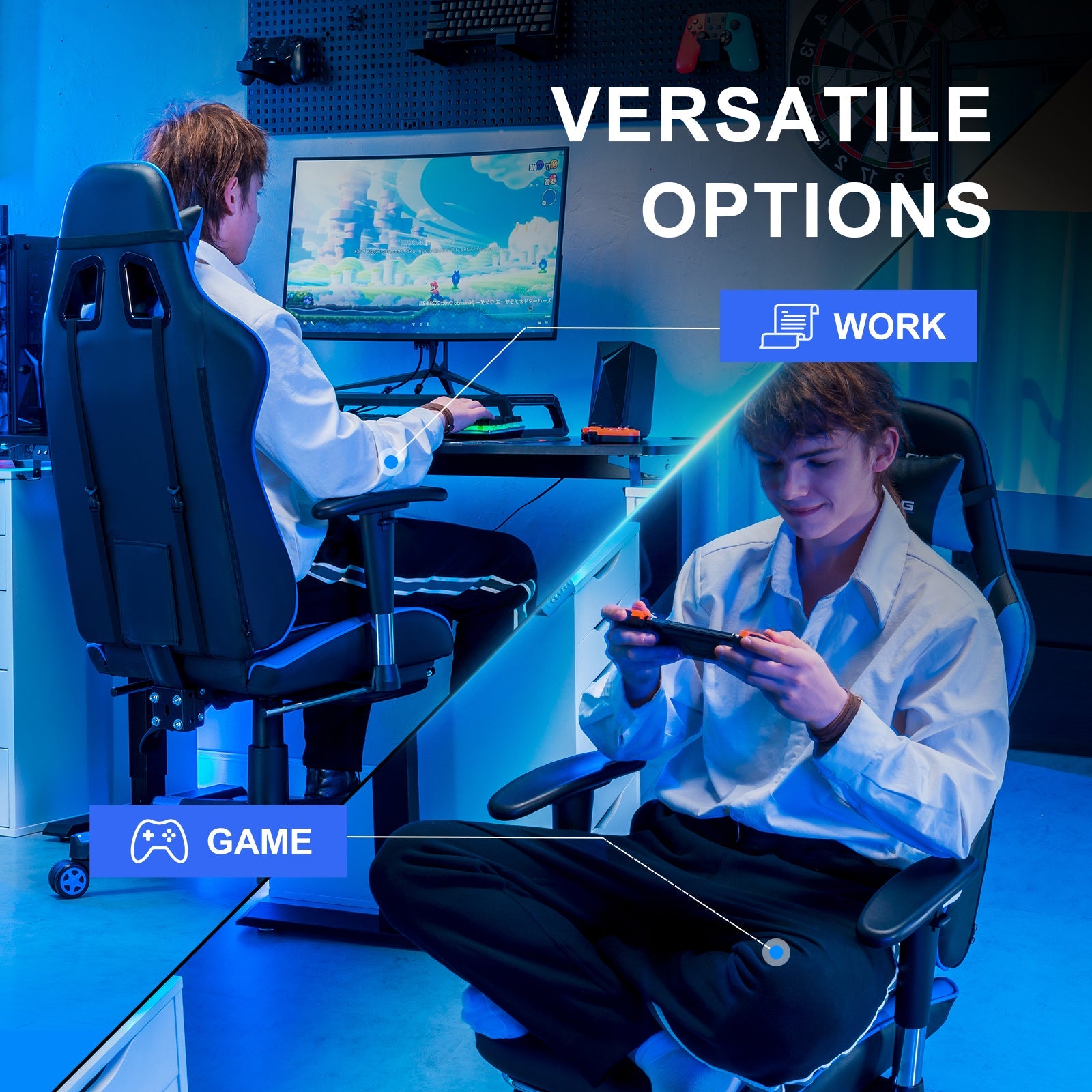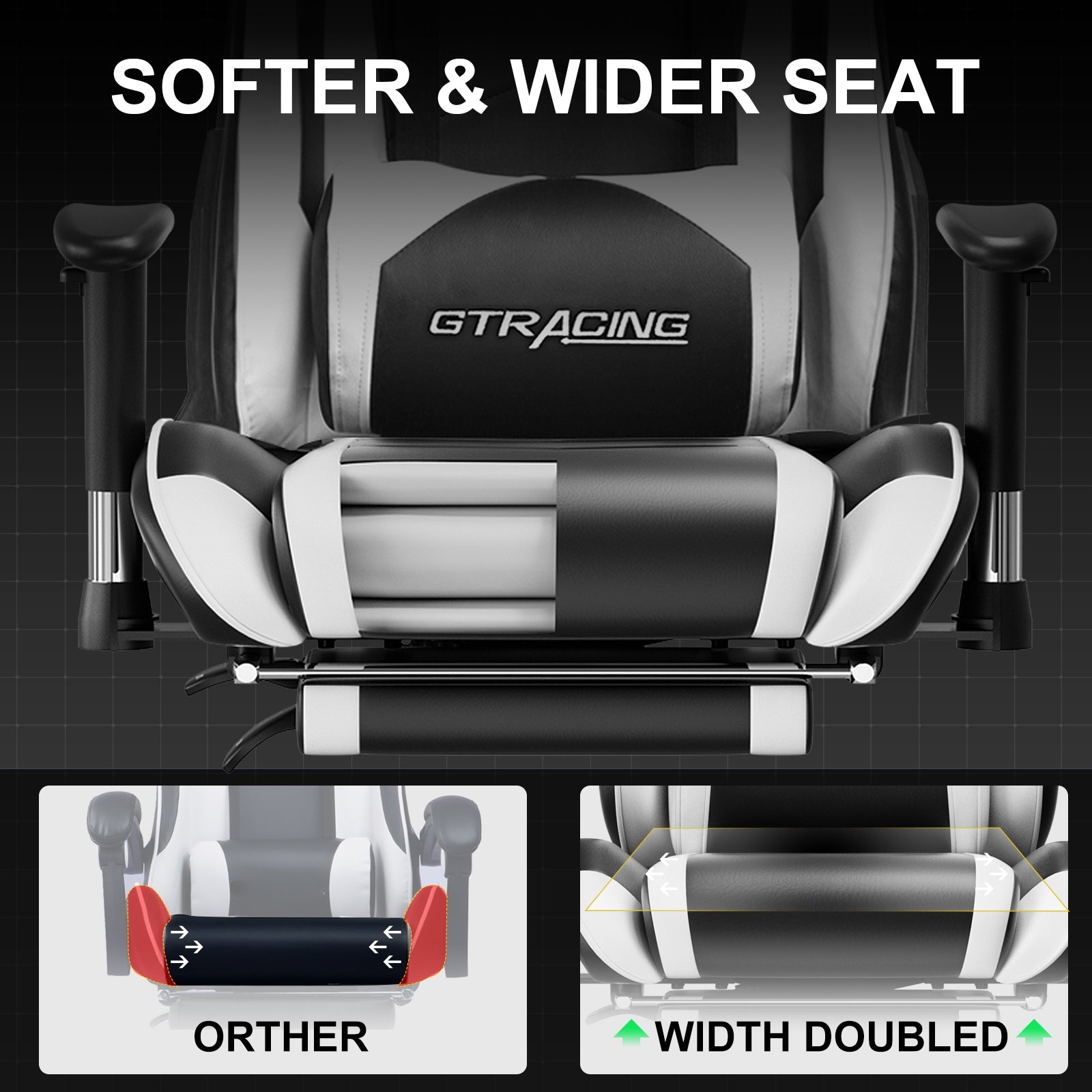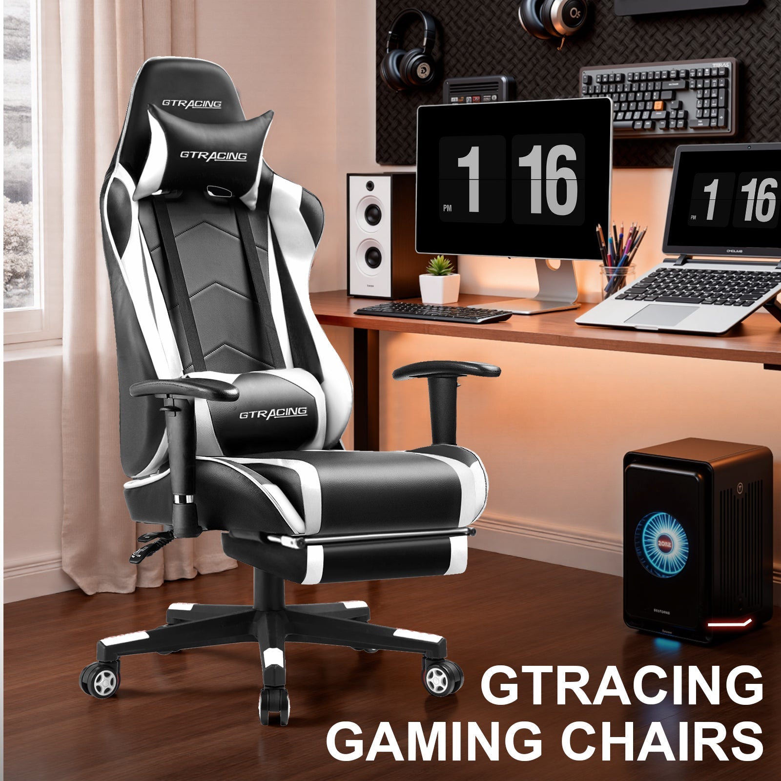 GTRACING Gaming Chair Office Chair PU Leather with Footrest&Adjustable Headrest-099NAF-WMT