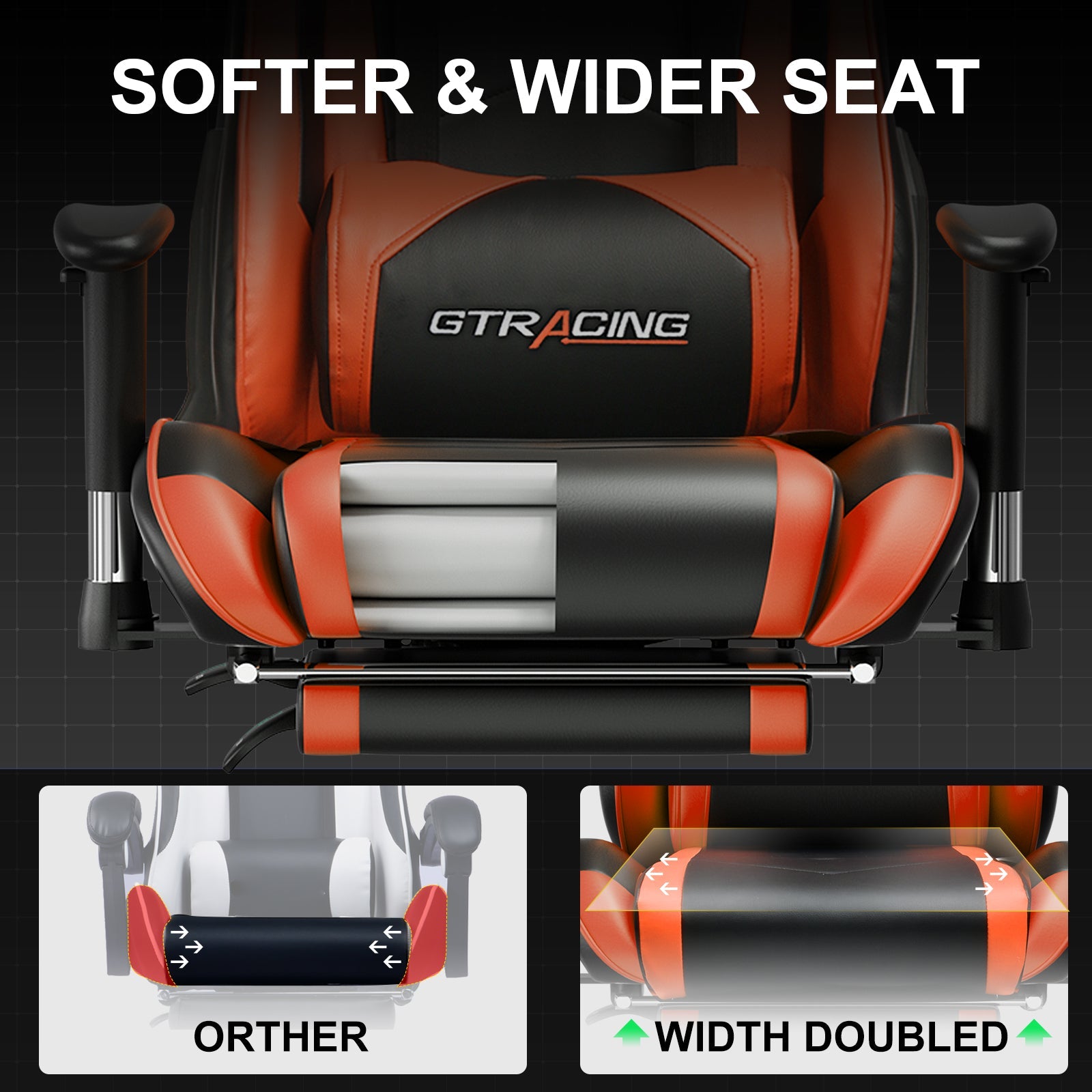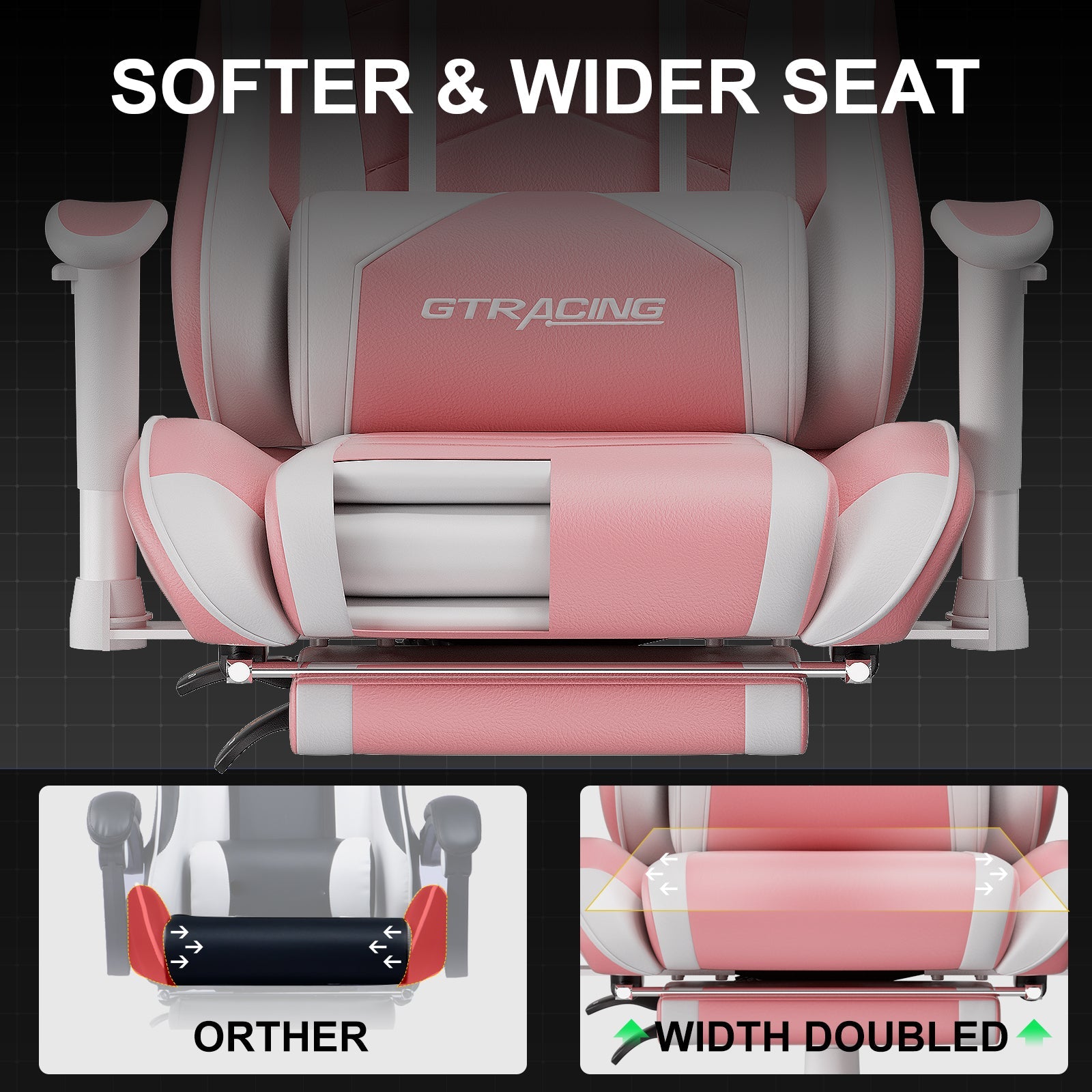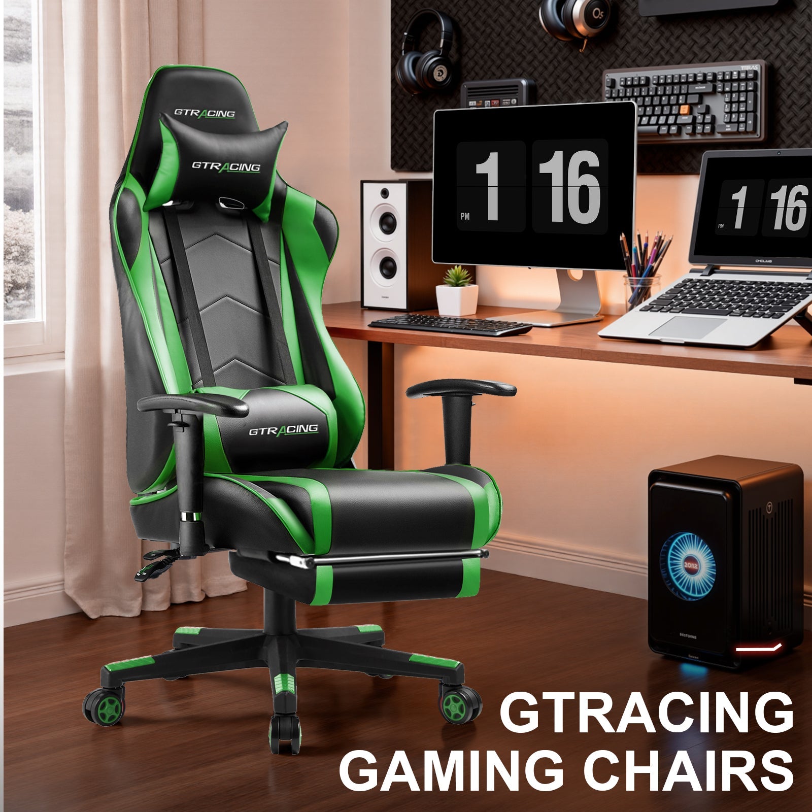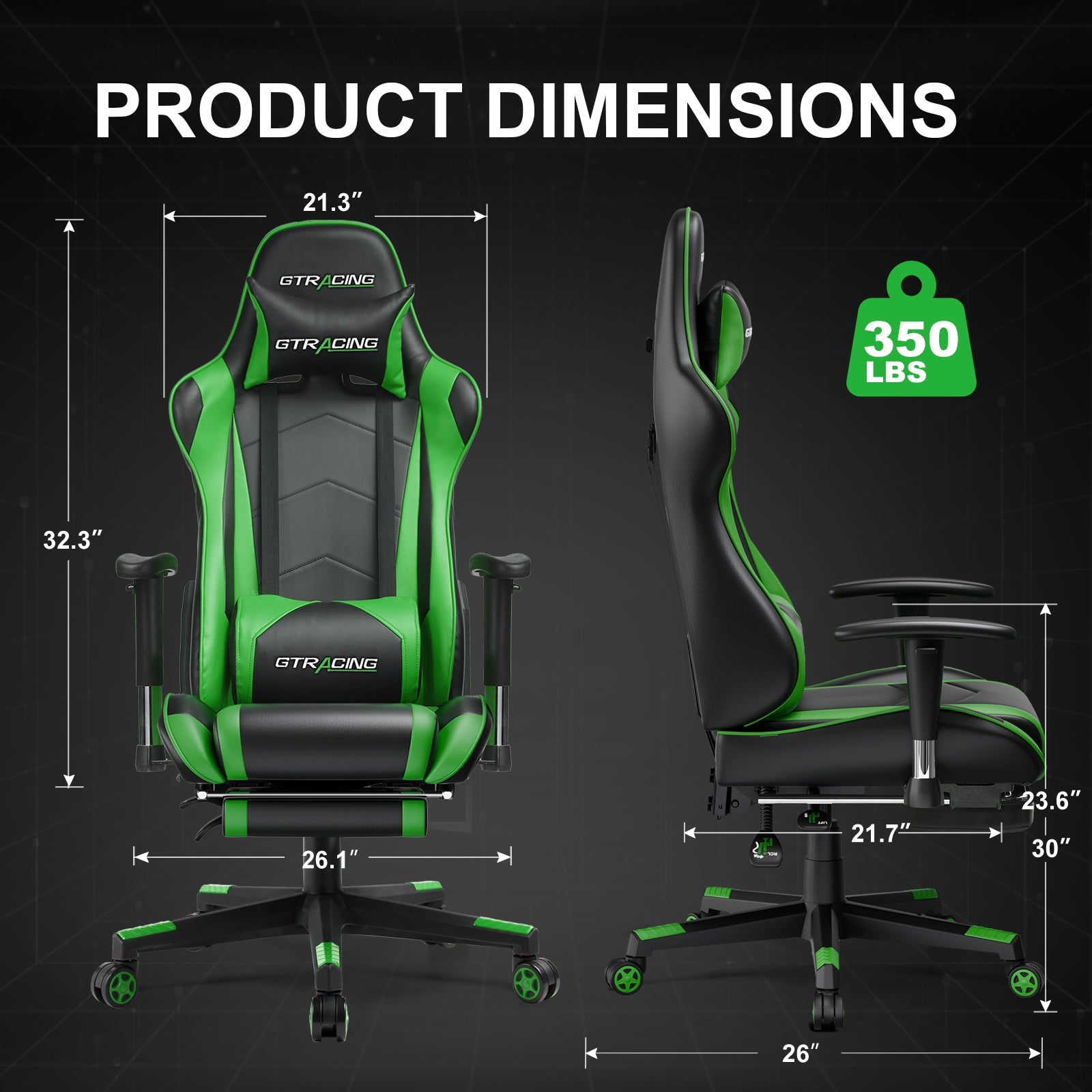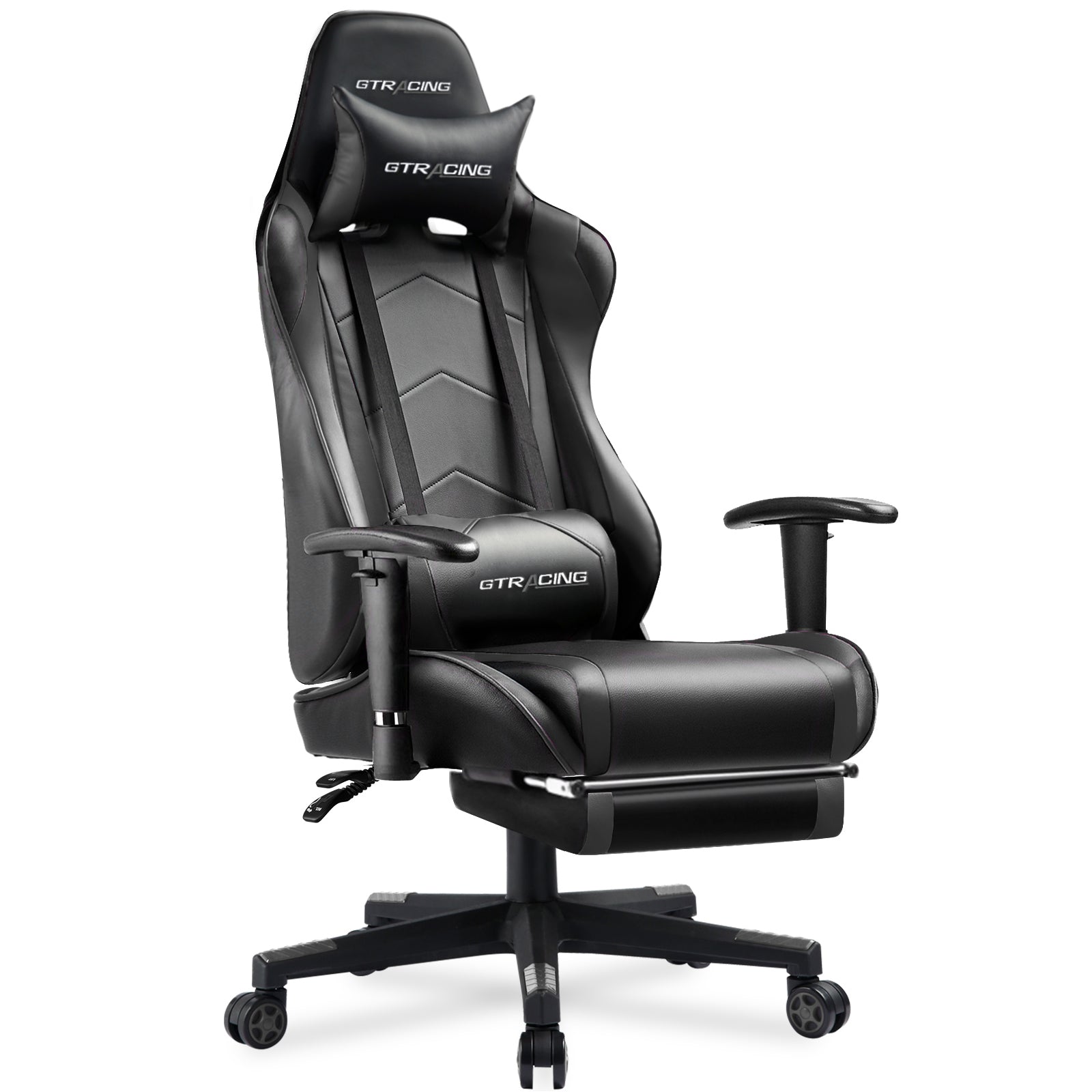 GTRACING Gaming Chair Office Chair PU Leather with Footrest&Adjustable Headrest-099NAF-WMT