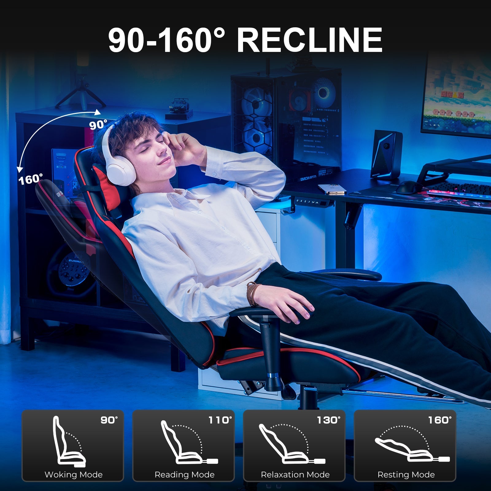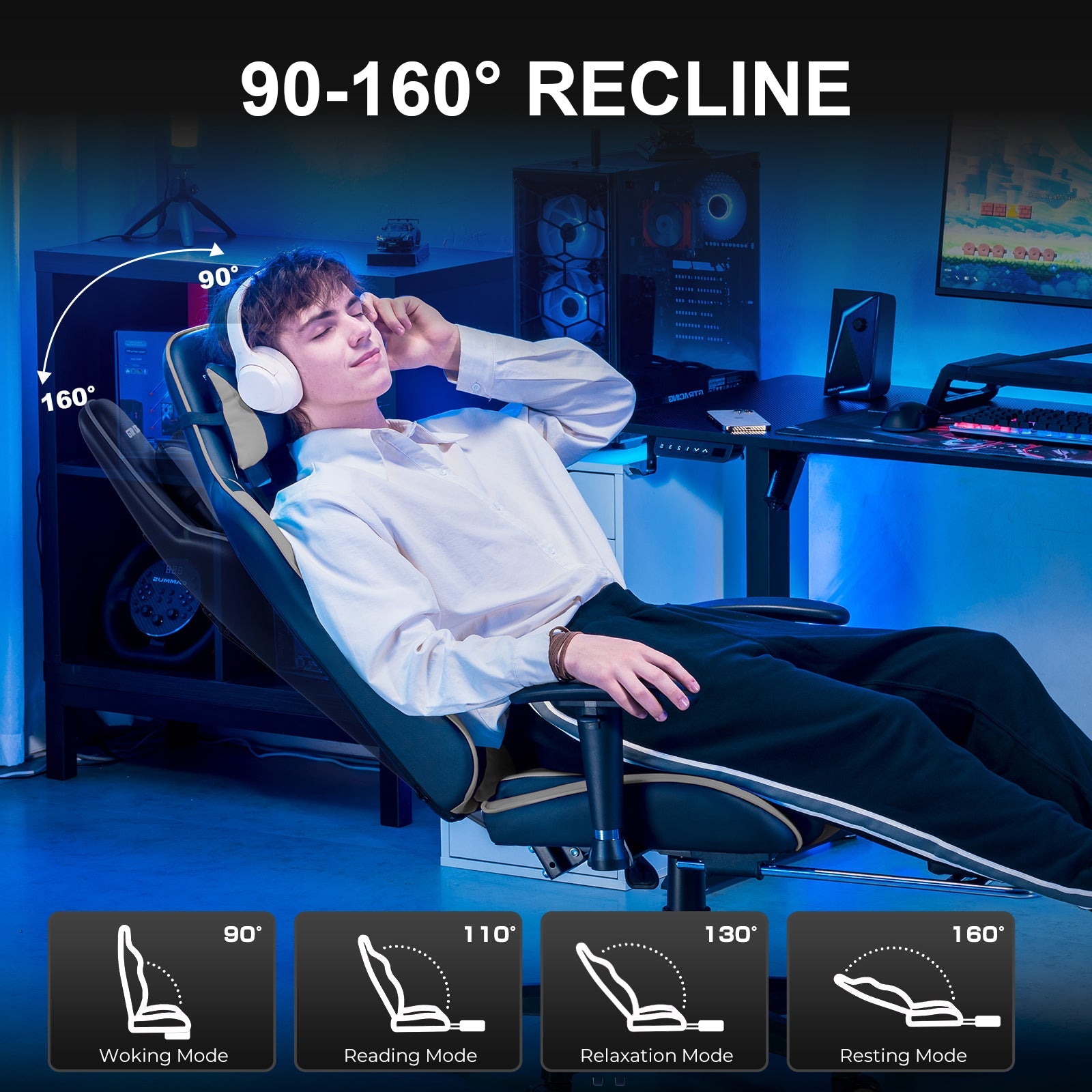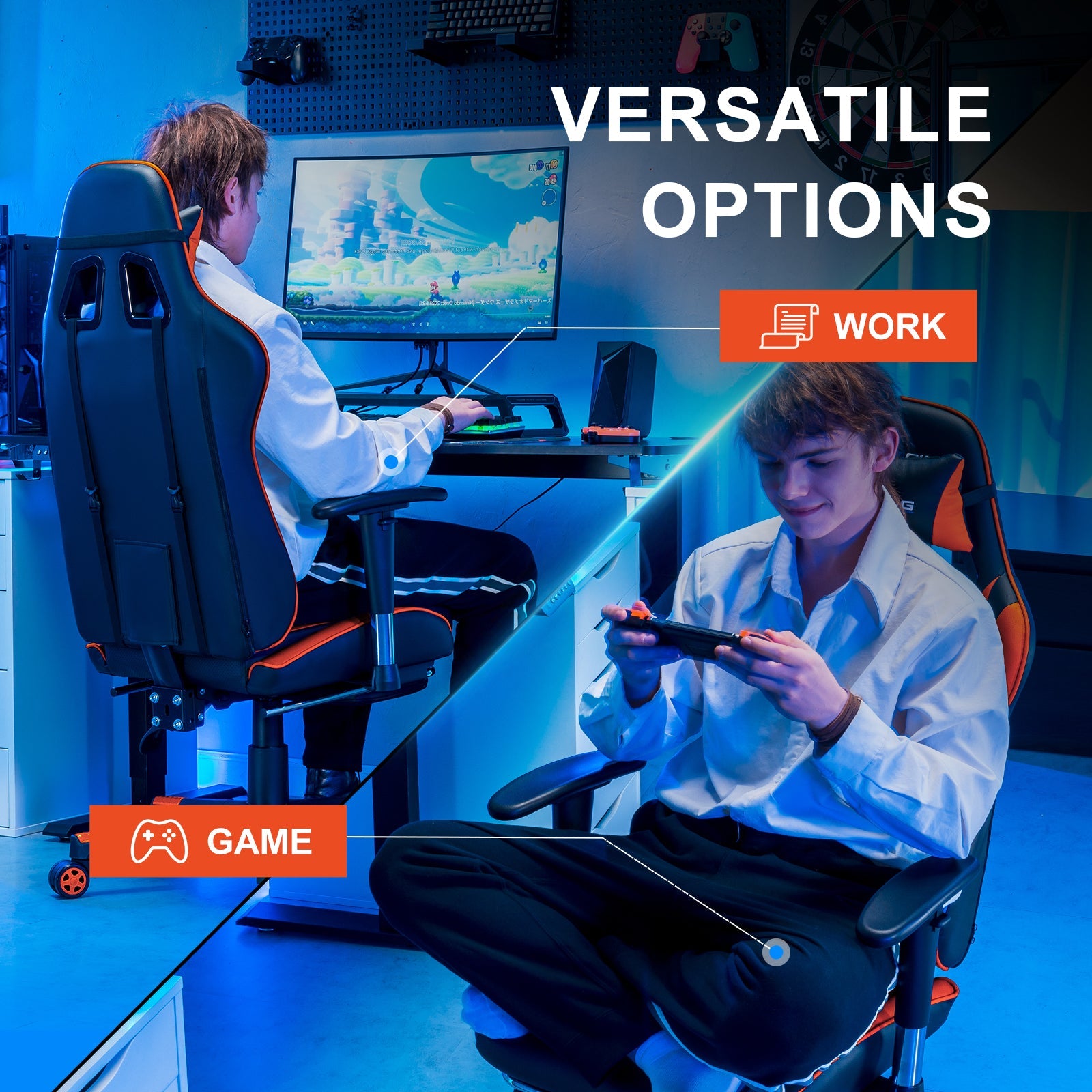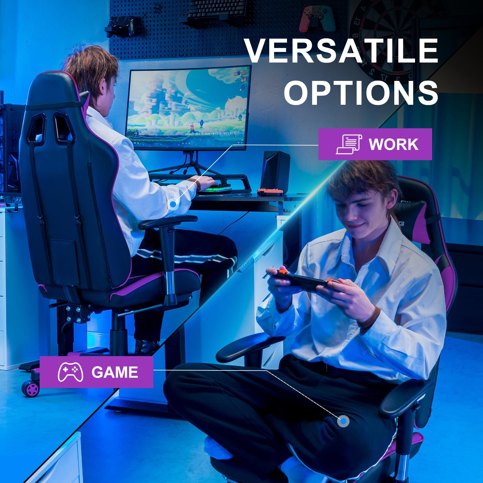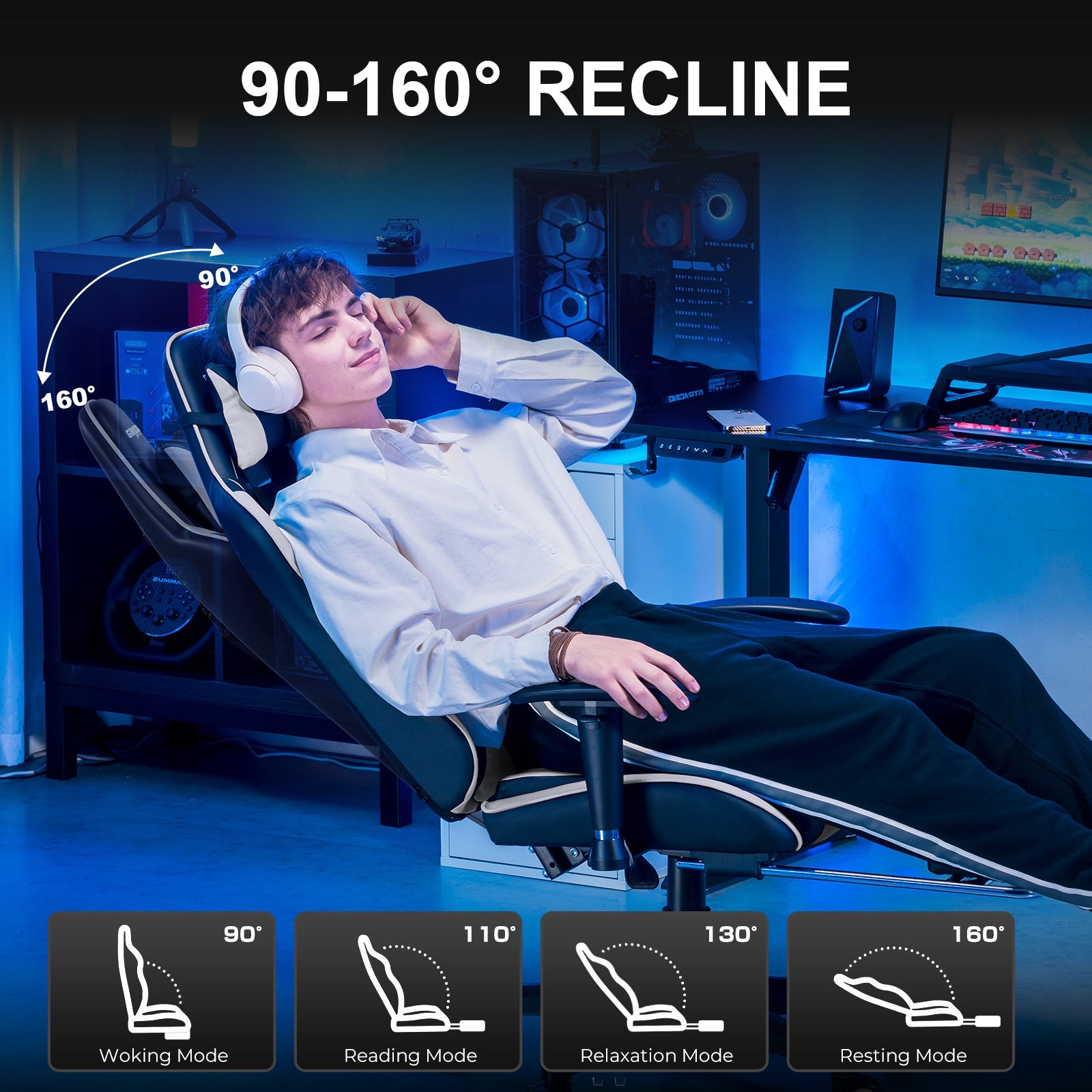 GTRACING Gaming Chair Office Chair PU Leather with Footrest&Adjustable Headrest-099NAF-WMT