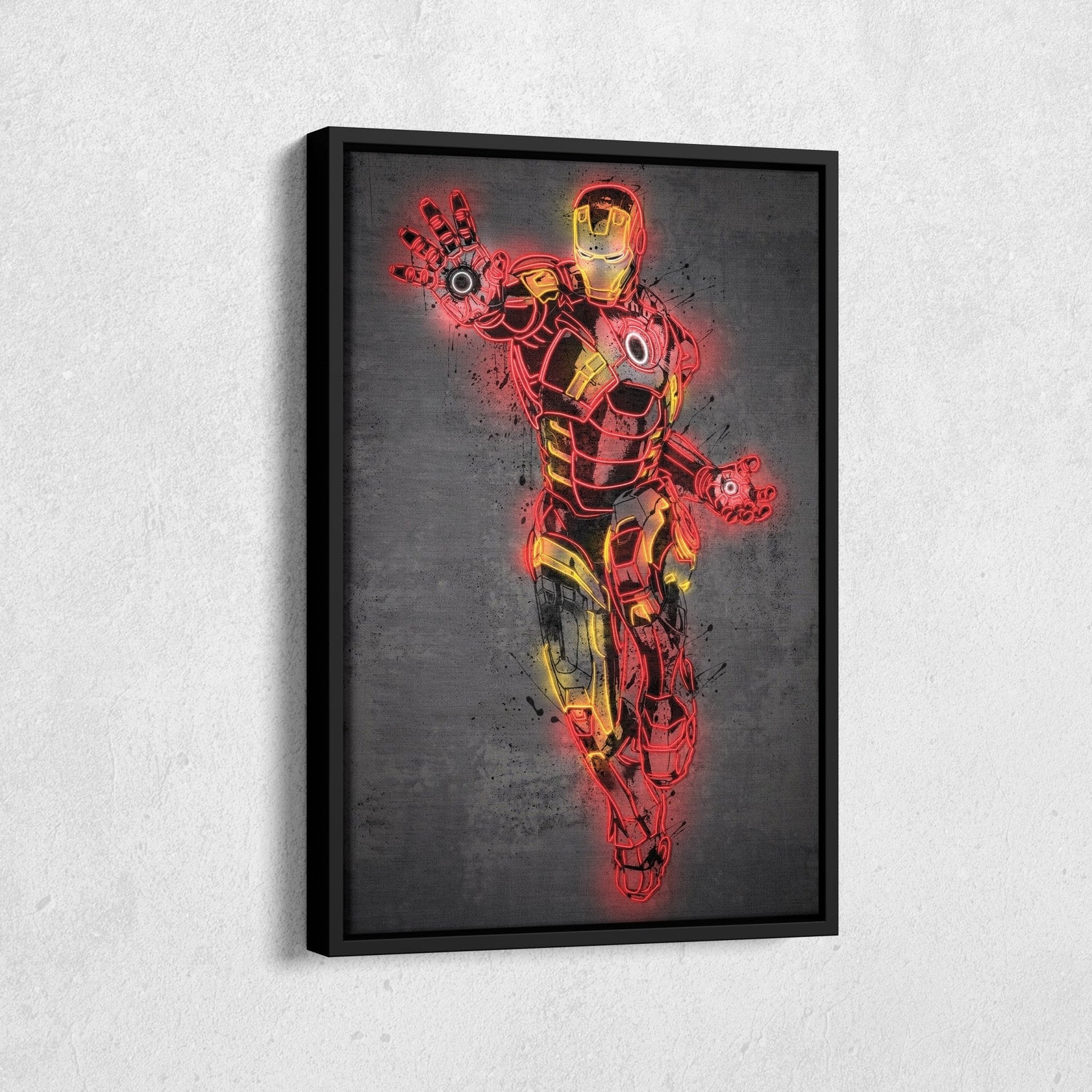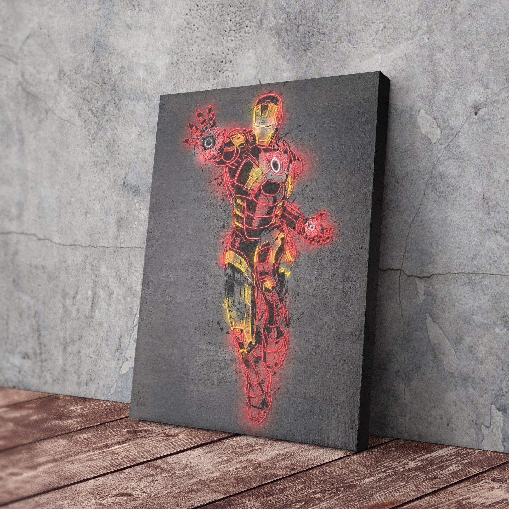 Elevate your space with our Iron Man Canvas Neon Art Print, inspired by Marvel Comics. Designed to infuse your fan cave with superhero magic, this bespoke piece features vibrant neon elements that capture the essence of the character in stunning detail. Perfect for fans seeking to enhance their wall decor. Get yours today and showcase your Iron Man fandom in style!