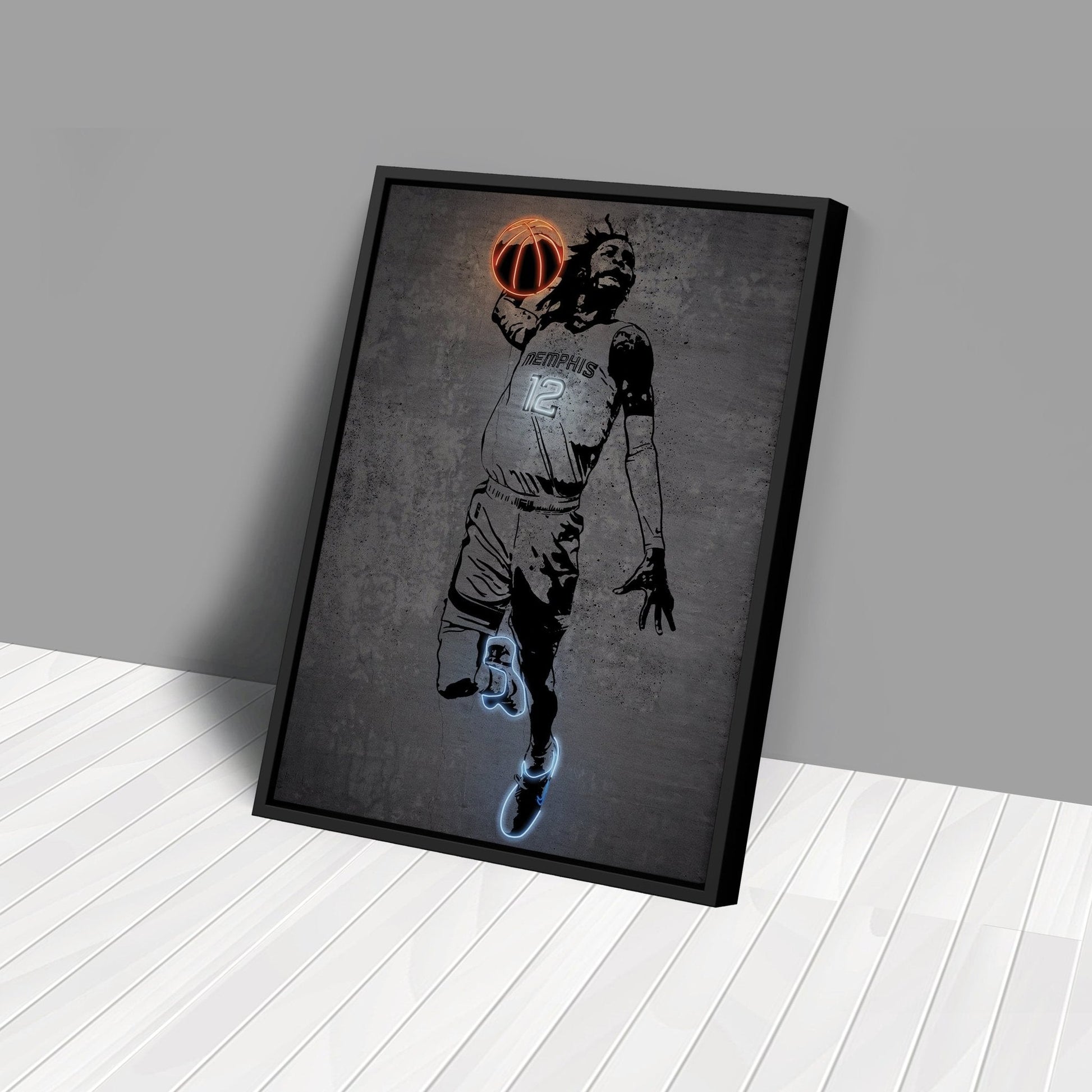 Ja Morant Neon Canvas Art | Modern Wall Decor for Grizzlies Fans