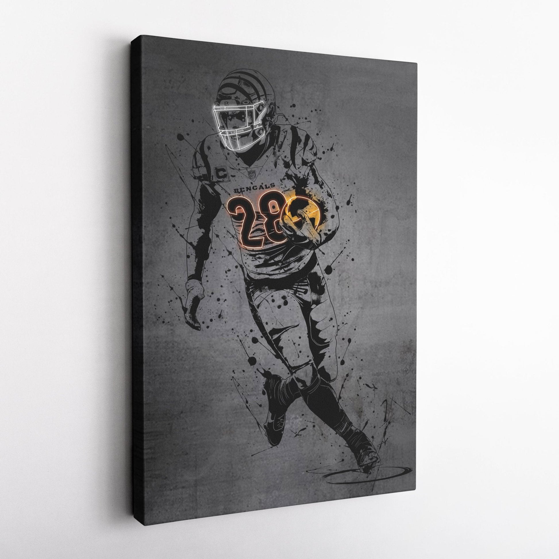 Joe Mixon Neon Canvas Art | Modern Wall Decor for Bengals Fans
