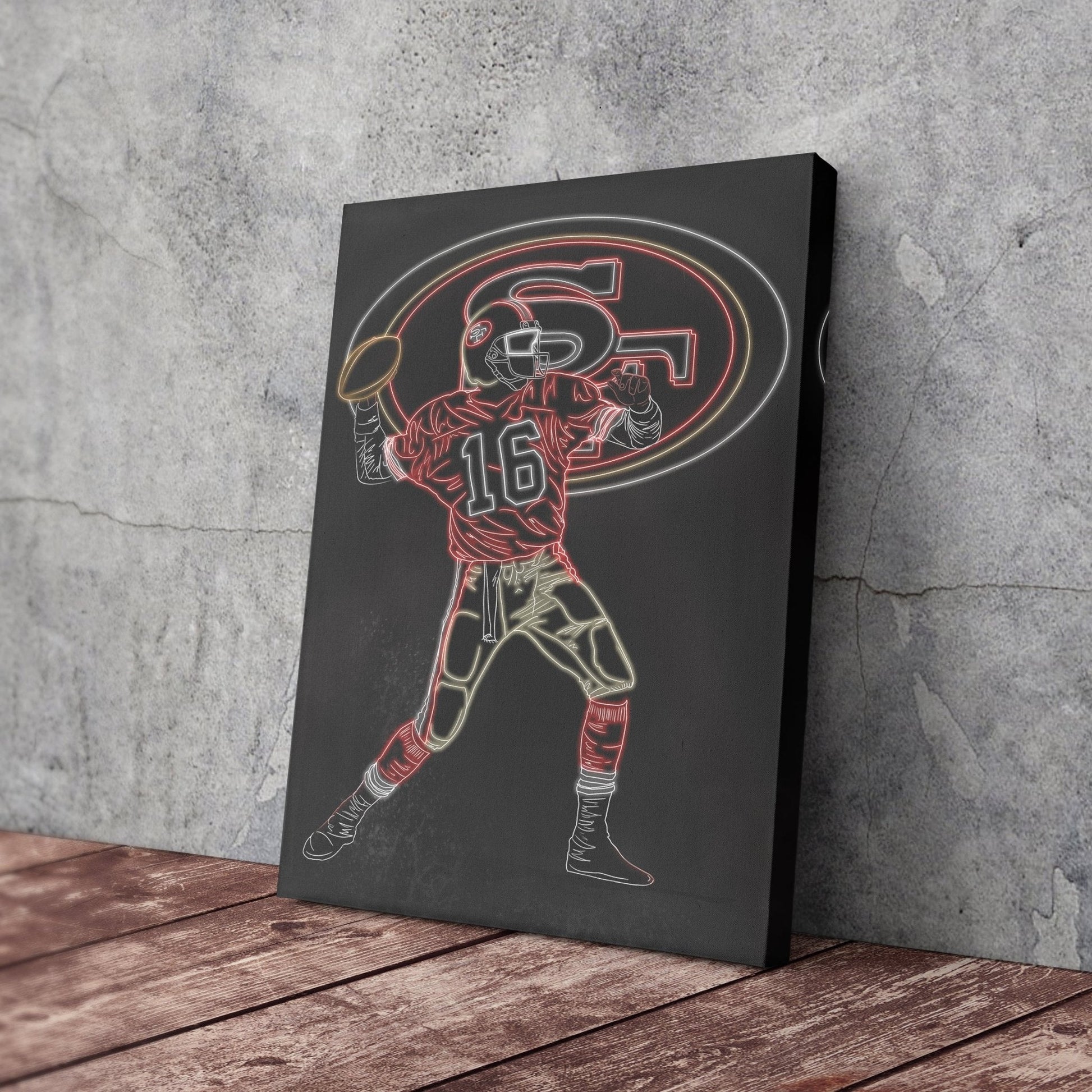 Joe Montana Neon Canvas Art | 49ers Wall Decor