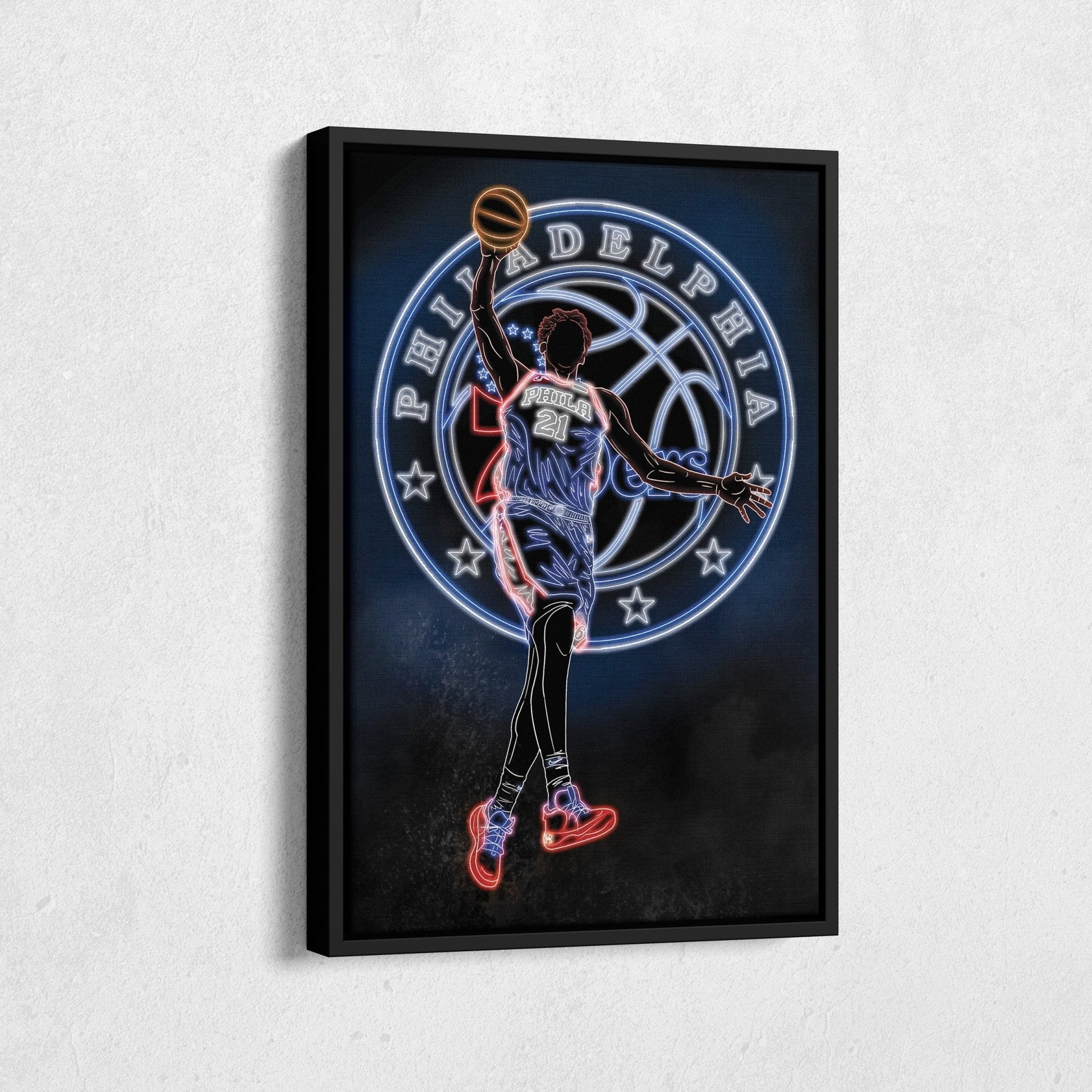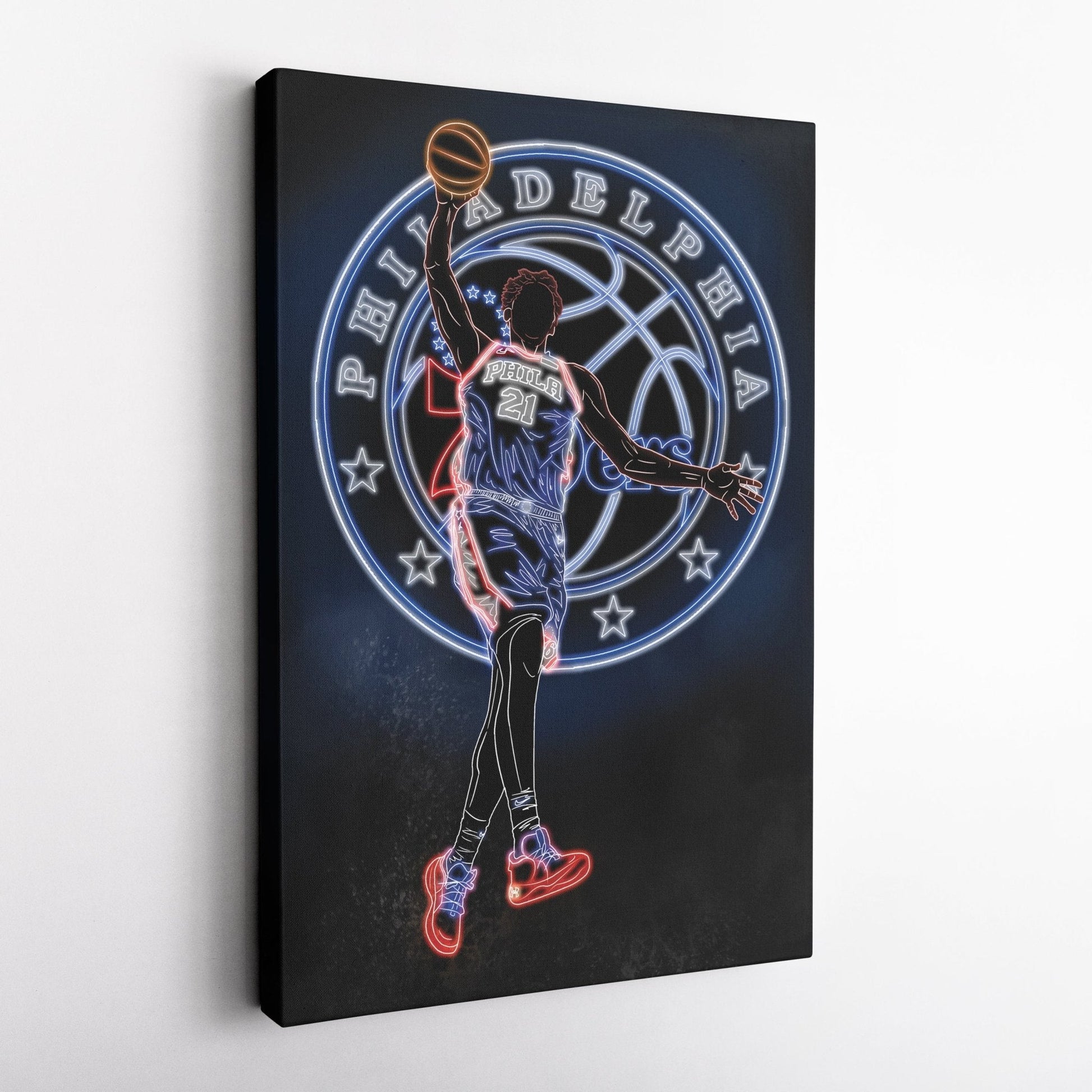 Joel Embiid Neon Canvas Art | 76ers Wall Decor