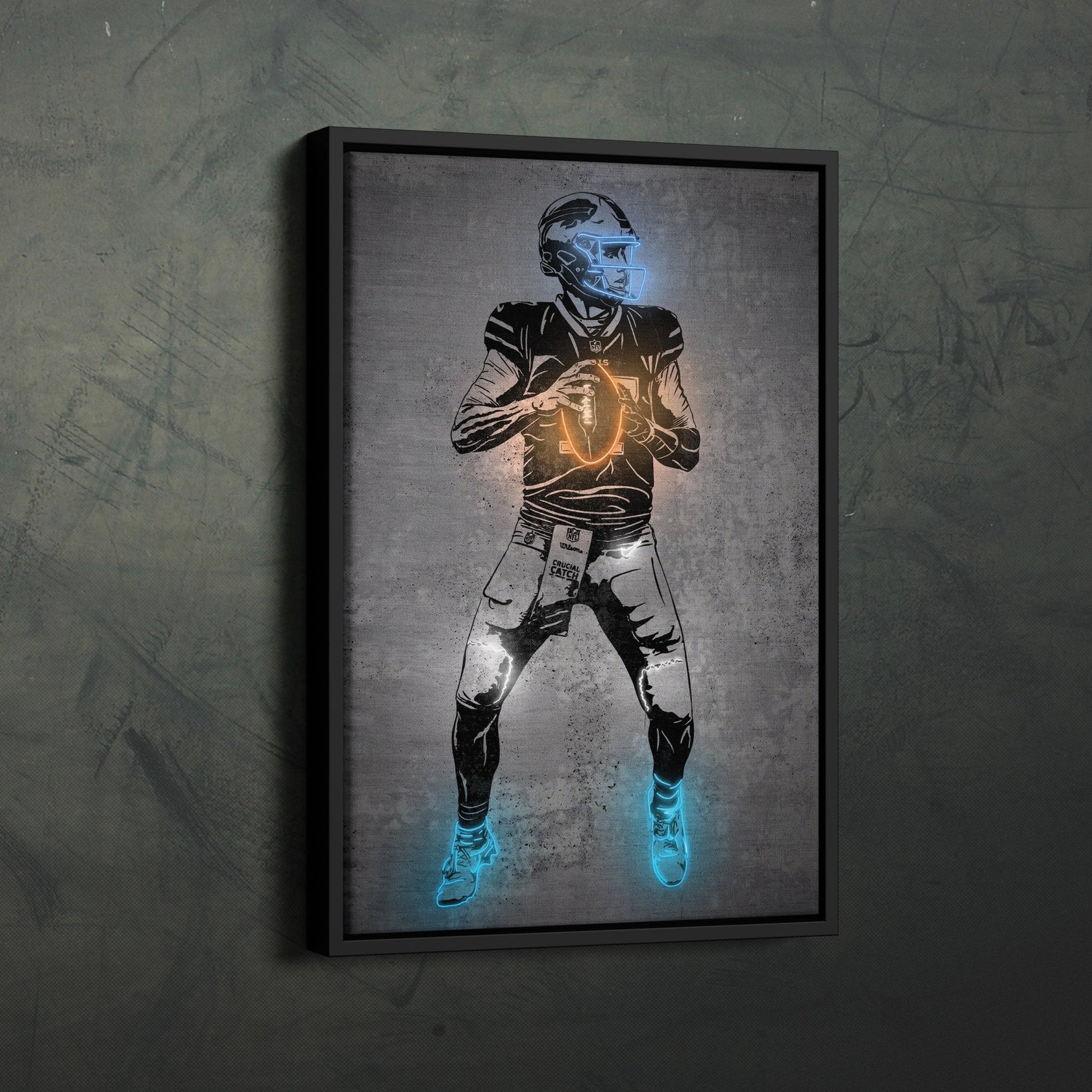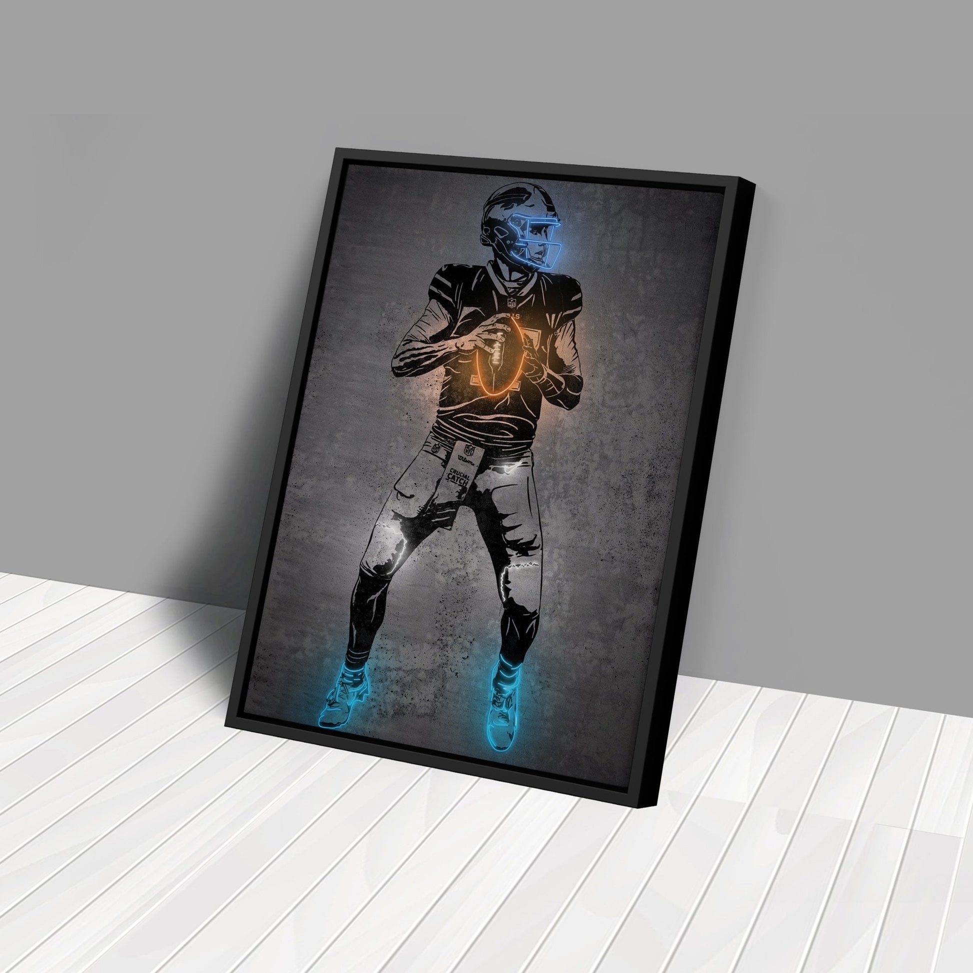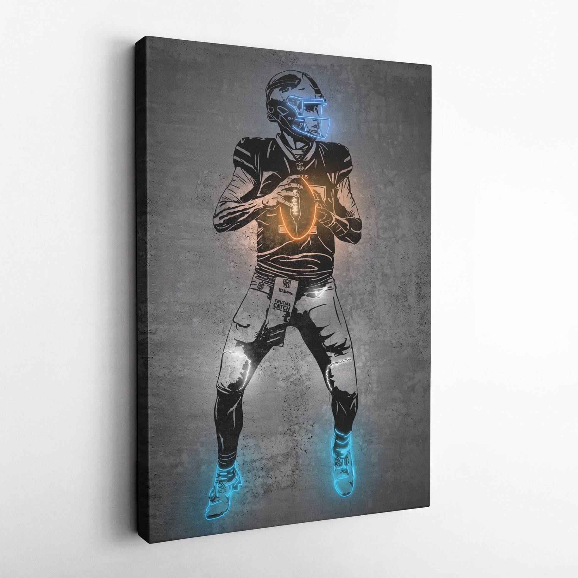 Josh Allen Neon Canvas Art | Modern Wall Decor for Bills Fans