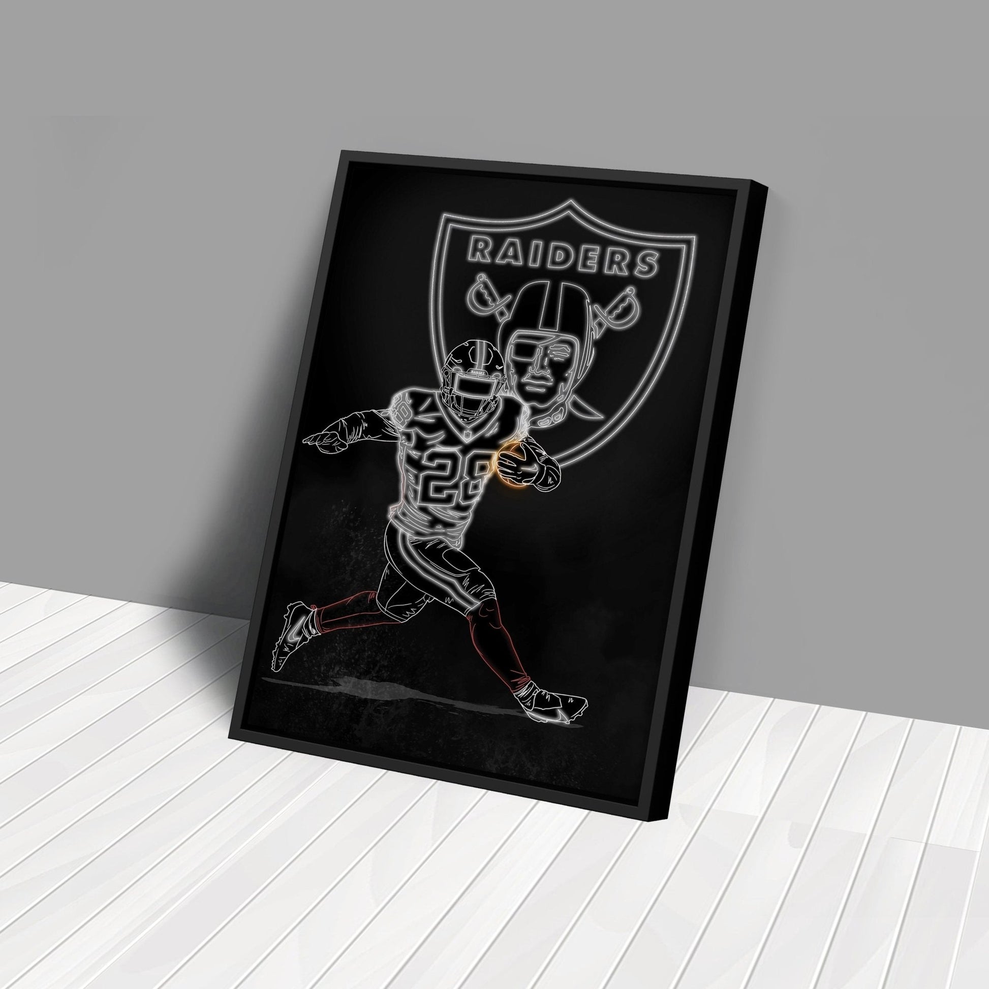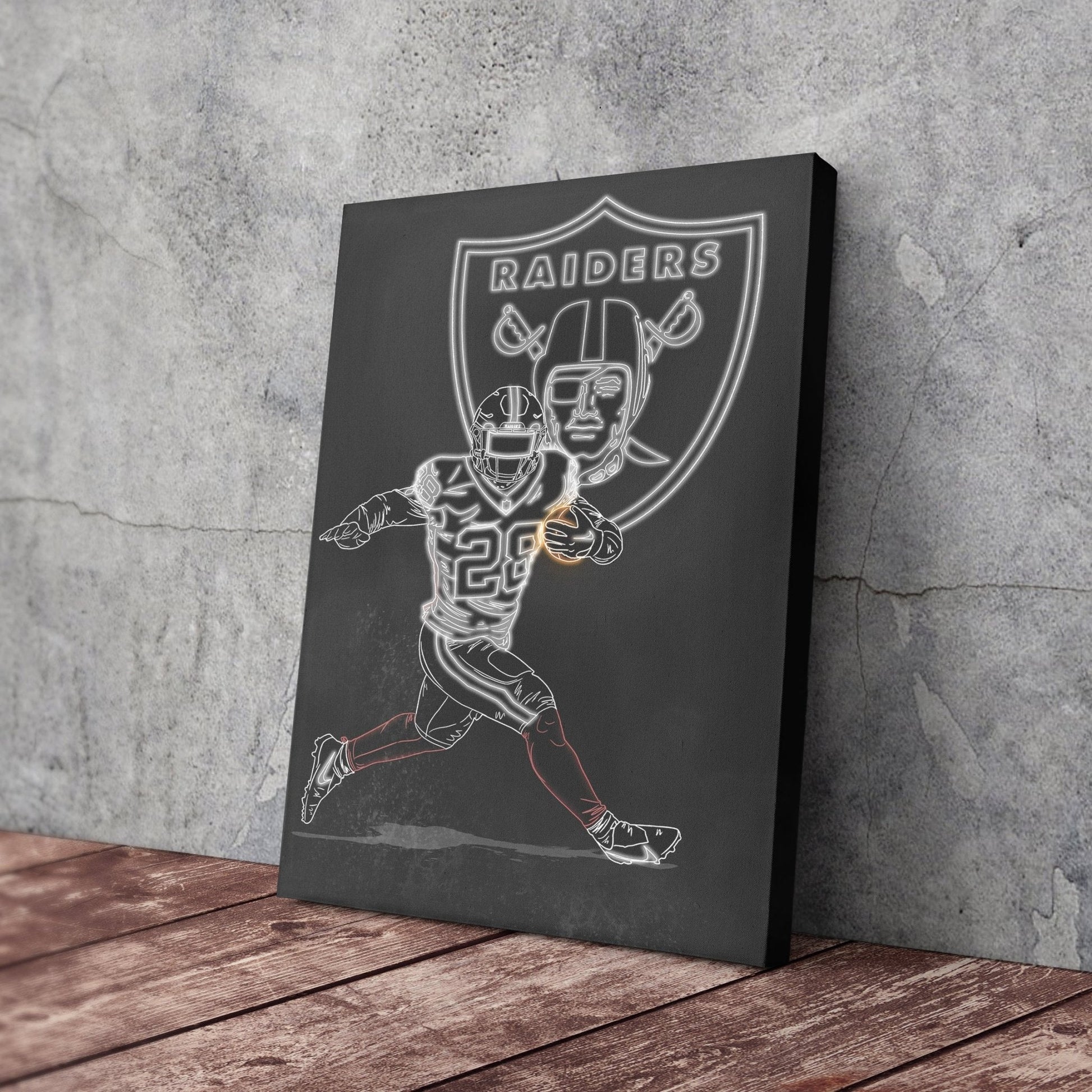 Josh Jacobs Neon Canvas Art | Raiders Wall Decor