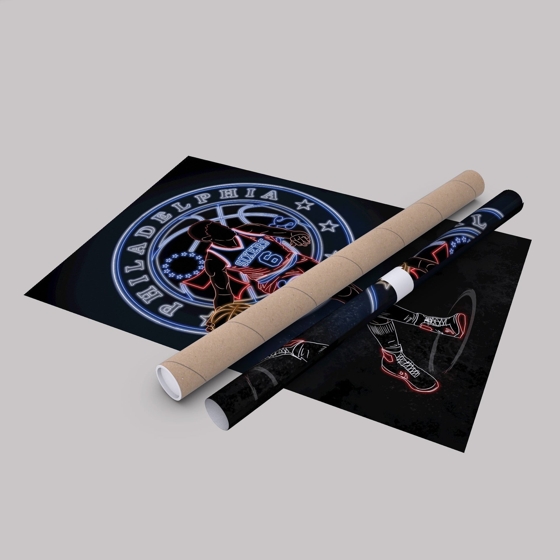 Julius Erving Neon Canvas Art | 76ers Wall Decor