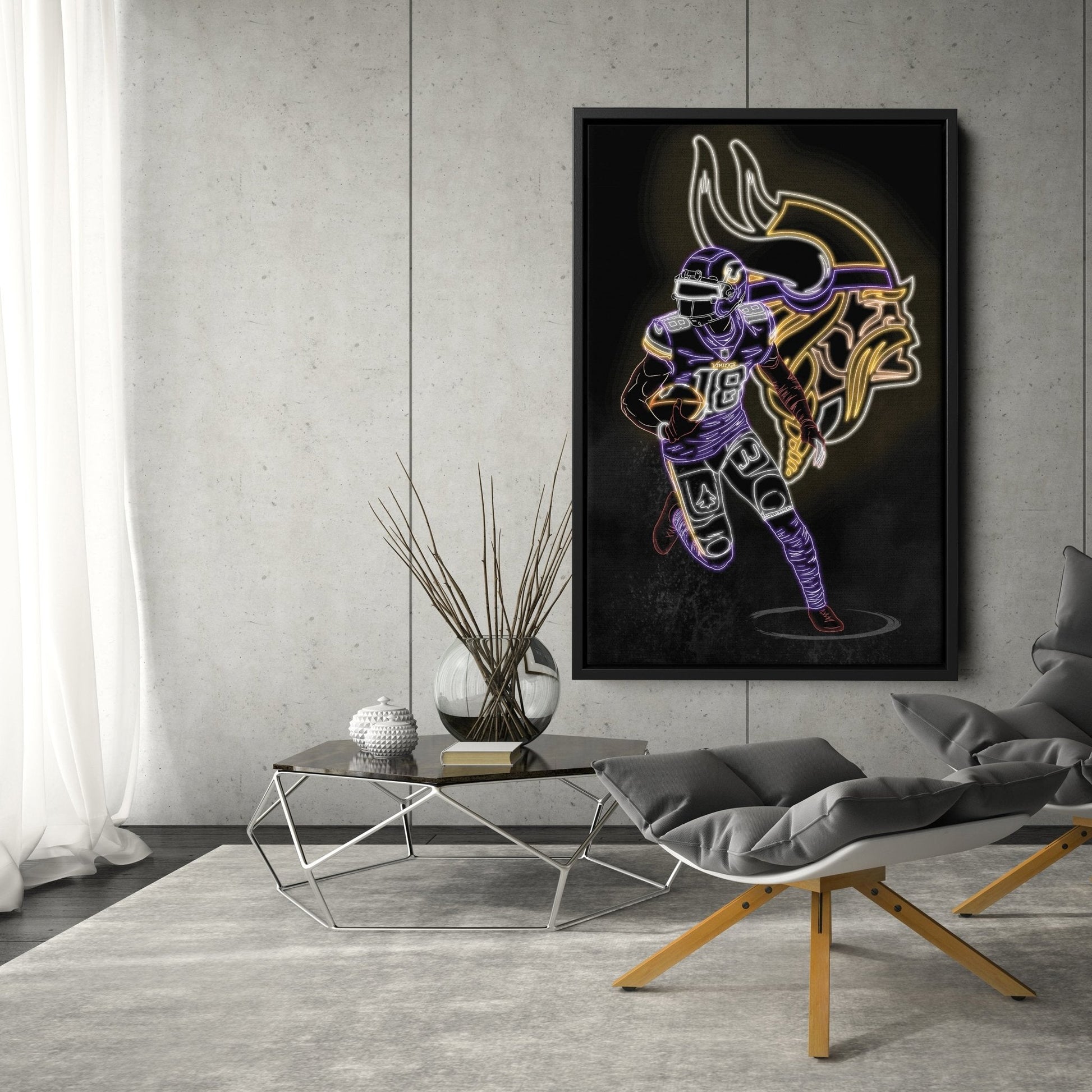 Justin Jefferson Neon Canvas Art | Vikings Wall Decor