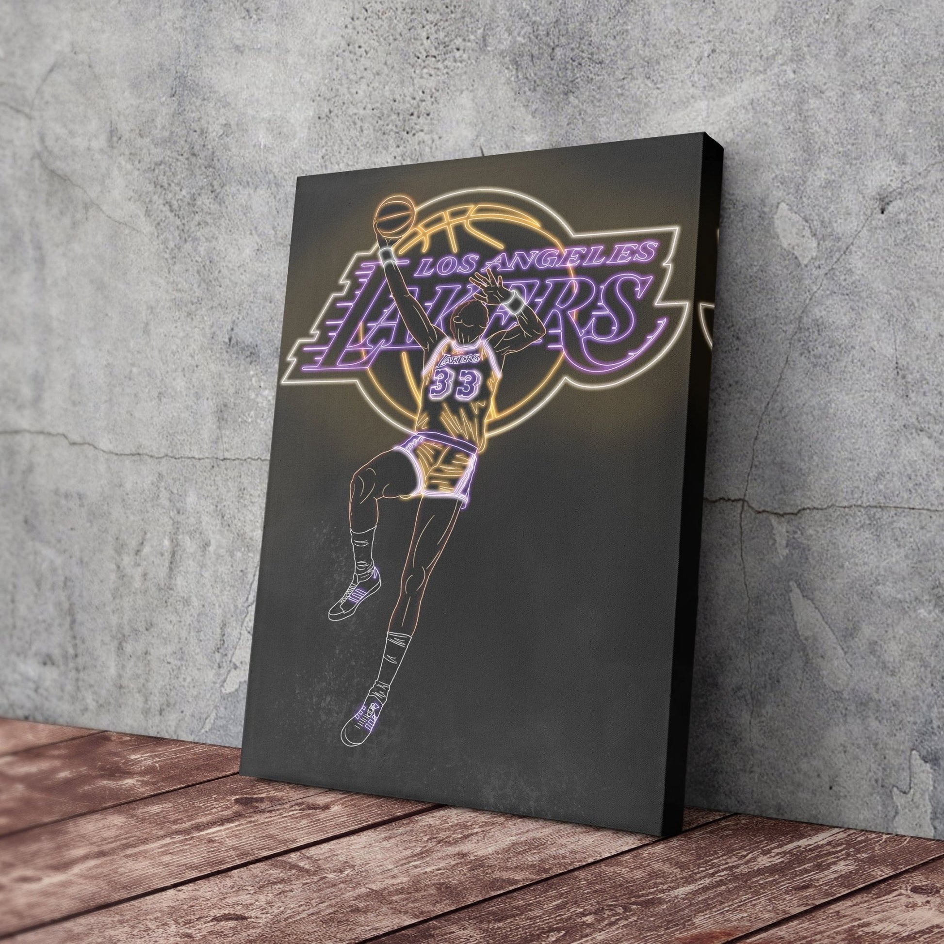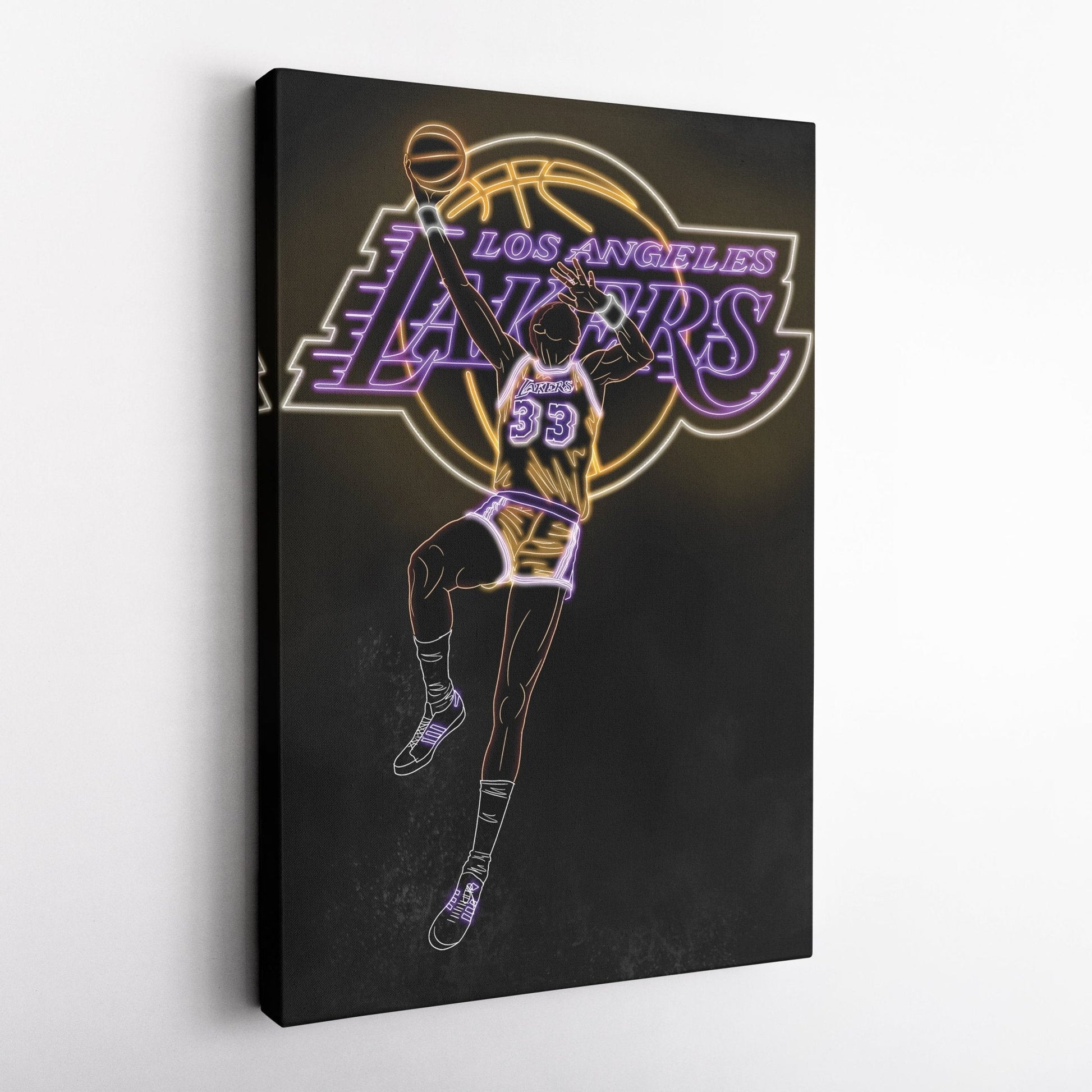 Kareem Abdul-Jabbar Neon Canvas Art | Lakers Wall Decor