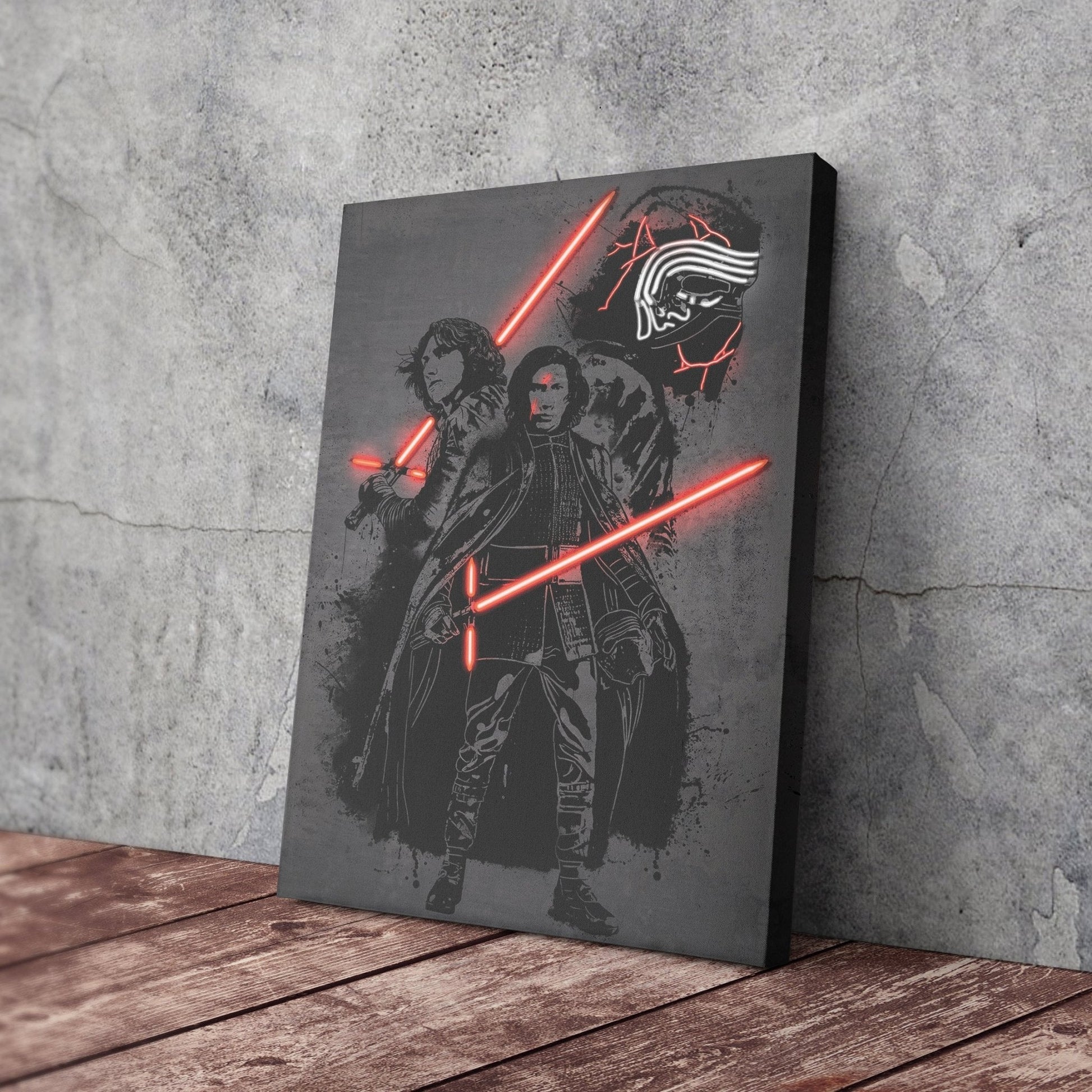 Elevate your space with our Kylo Ren Canvas Neon Art Print, designed to infuse your fan cave with Star Wars magic. Featuring vibrant neon elements, this bespoke piece captures the essence of the character in stunning detail. Perfect for fans seeking to elevate their wall decor. Get yours today and showcase your Kylo Ren fandom in style!