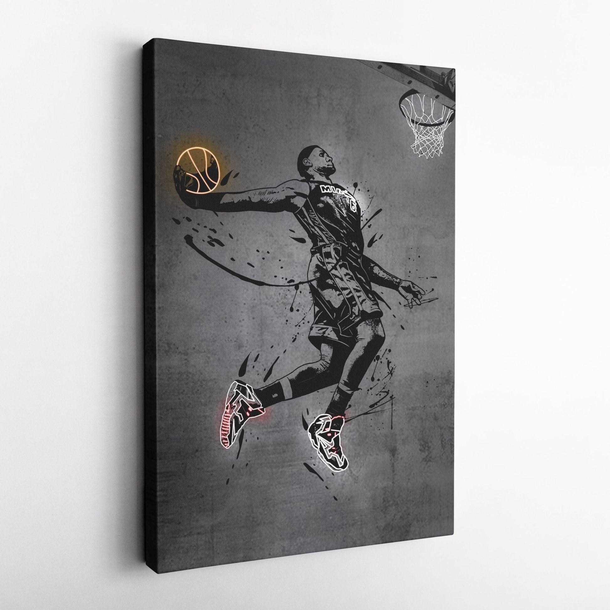 Lebron James Dunk Neon Canvas Art | Modern Wall Decor for Heat Fans