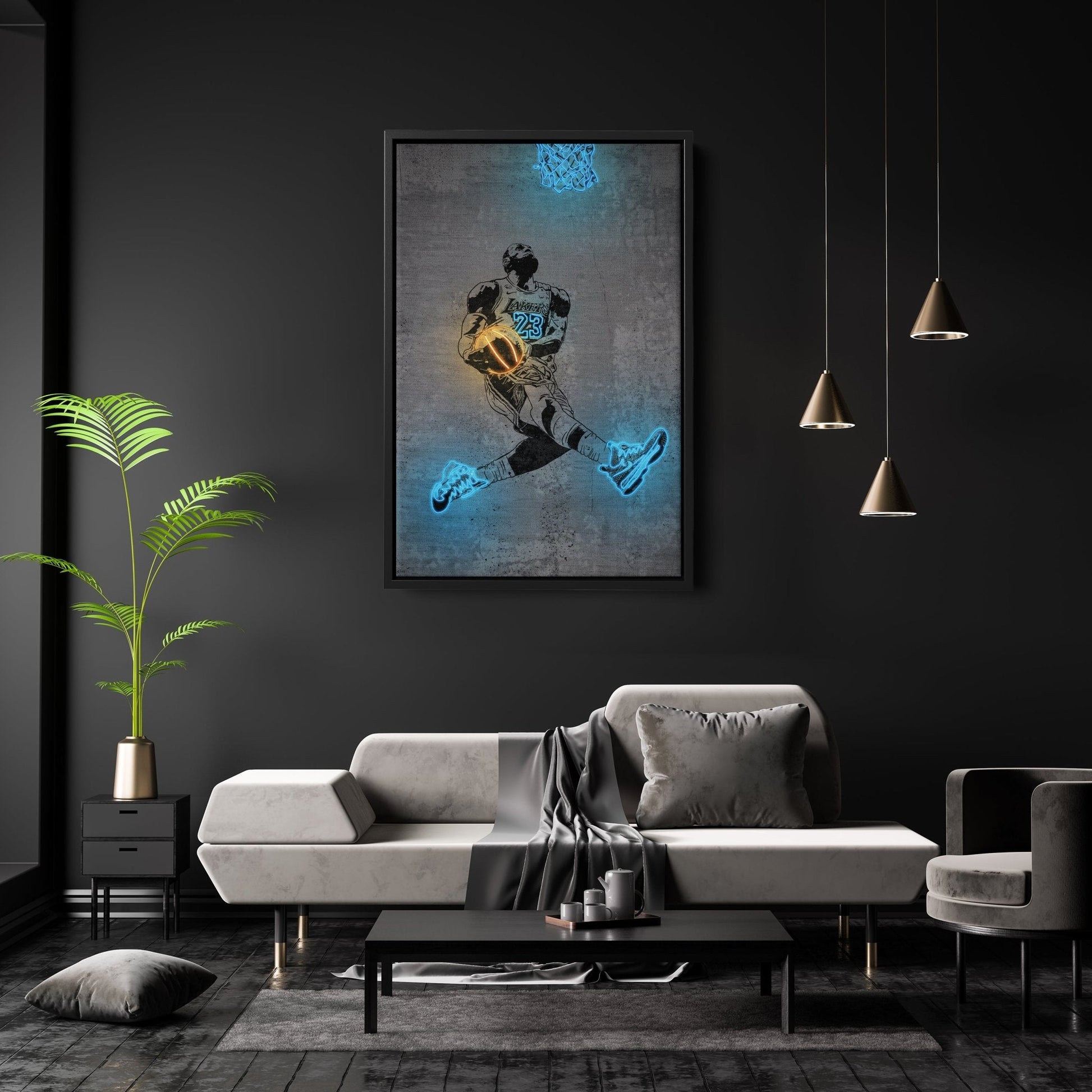 Lebron James Neon Canvas Art | Modern Wall Decor for Lakers Fans