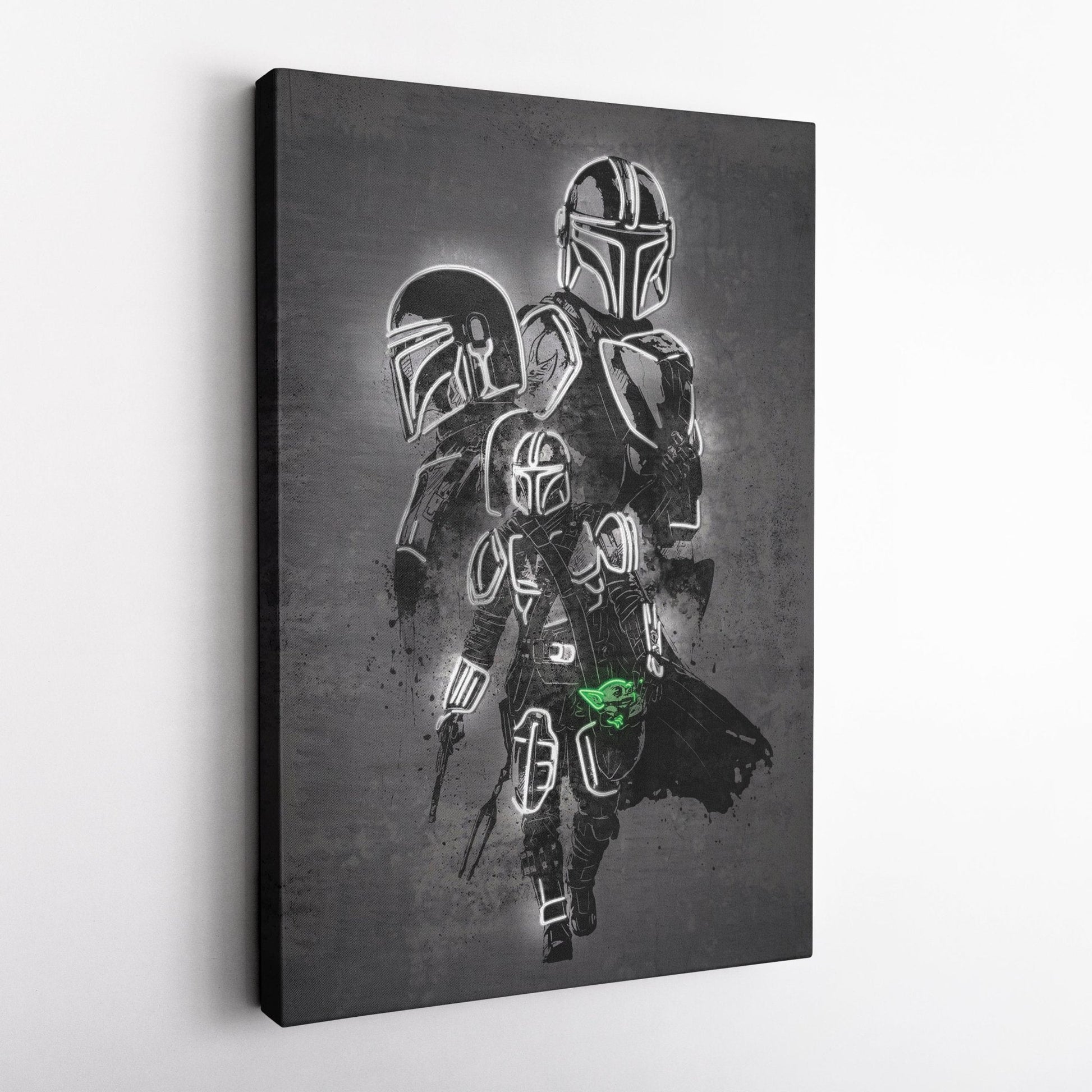 Elevate your space with our Mandalorian Canvas Neon Art Print, designed to infuse your fan cave with Star Wars magic. Featuring vibrant neon elements, this bespoke piece captures the essence of the character in stunning detail. Perfect for fans seeking to elevate their wall decor. Get yours today and showcase your Mandalorian fandom in style!