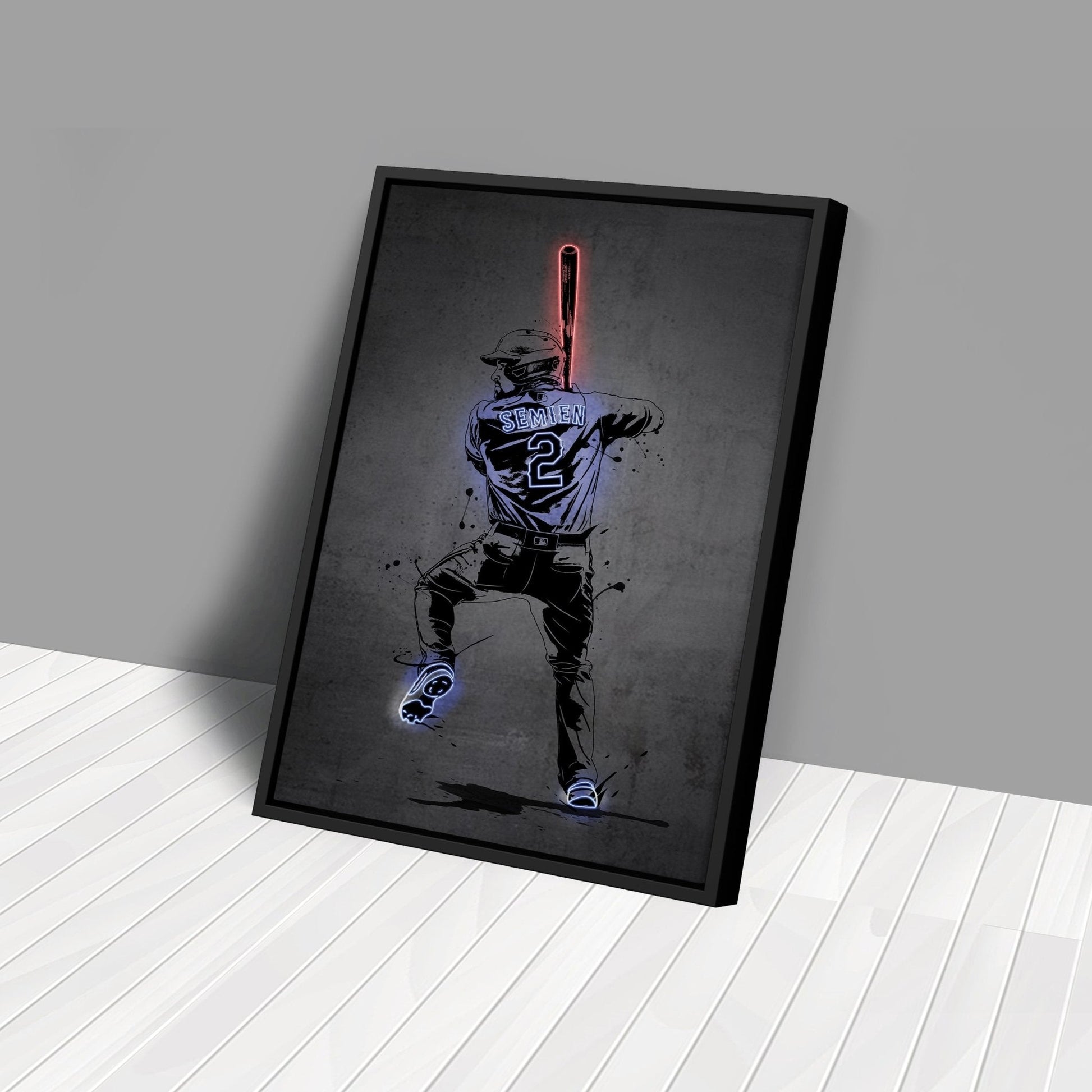 Marcus Semien Neon Canvas Art | Modern Wall Decor for Rangers Fans