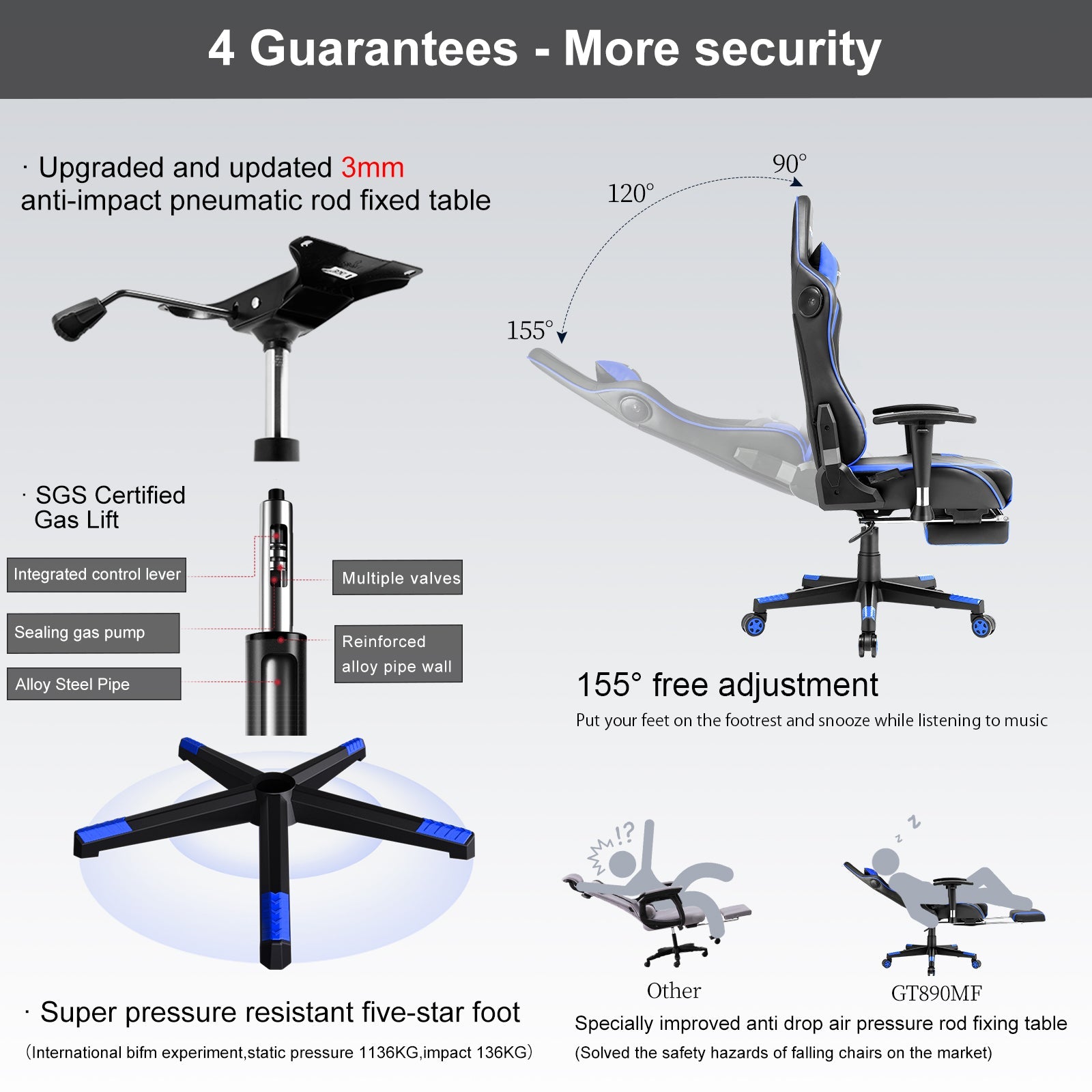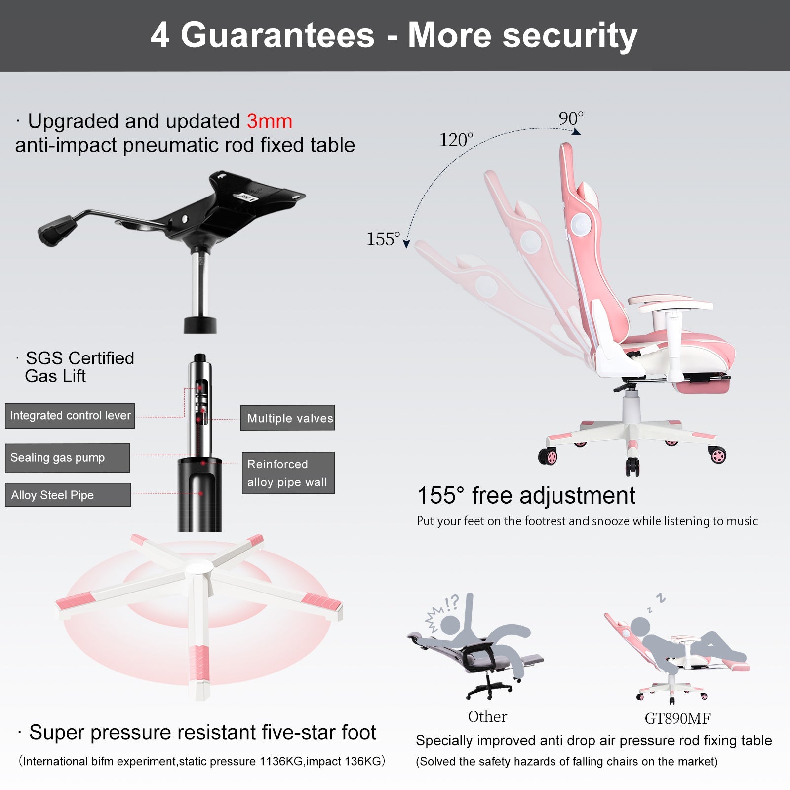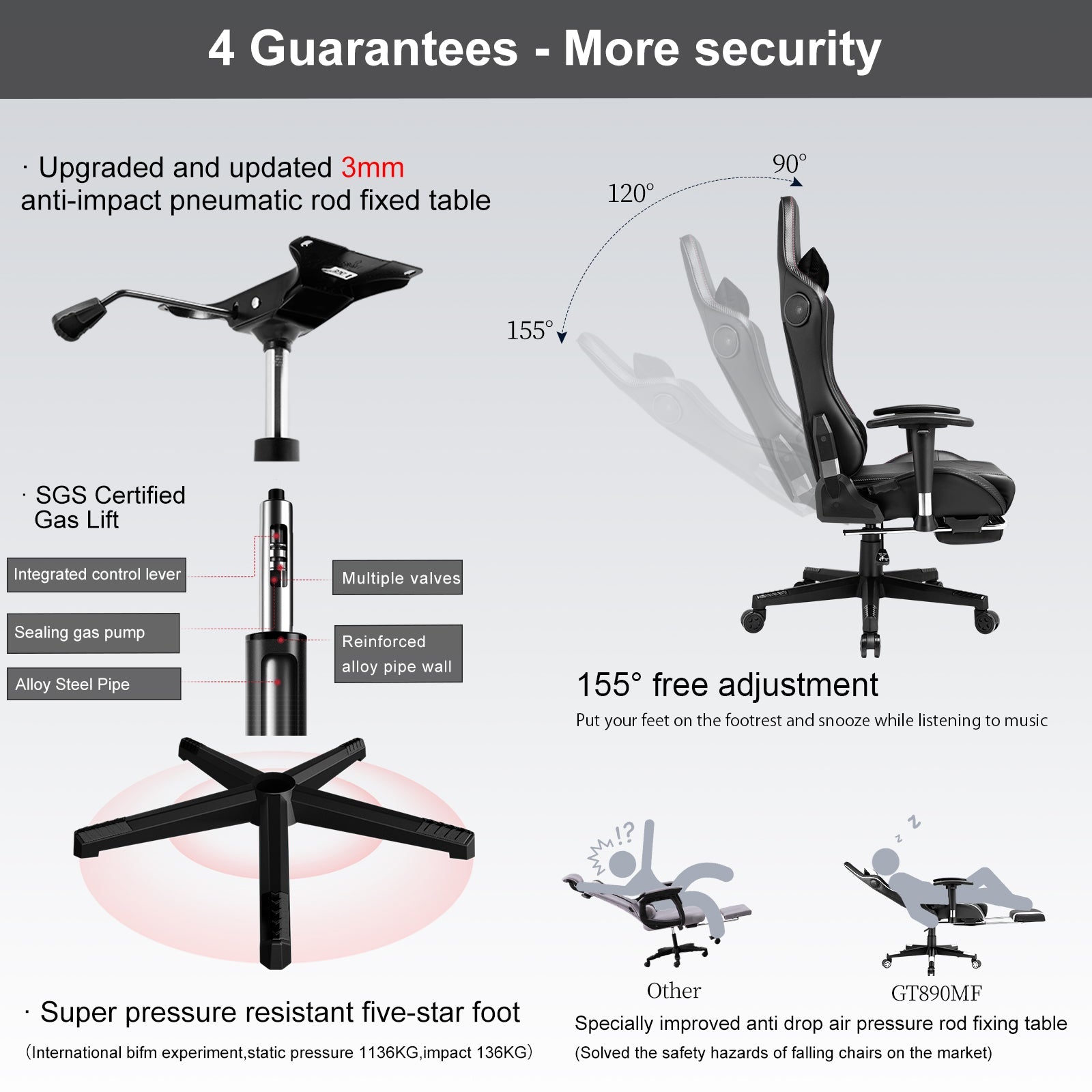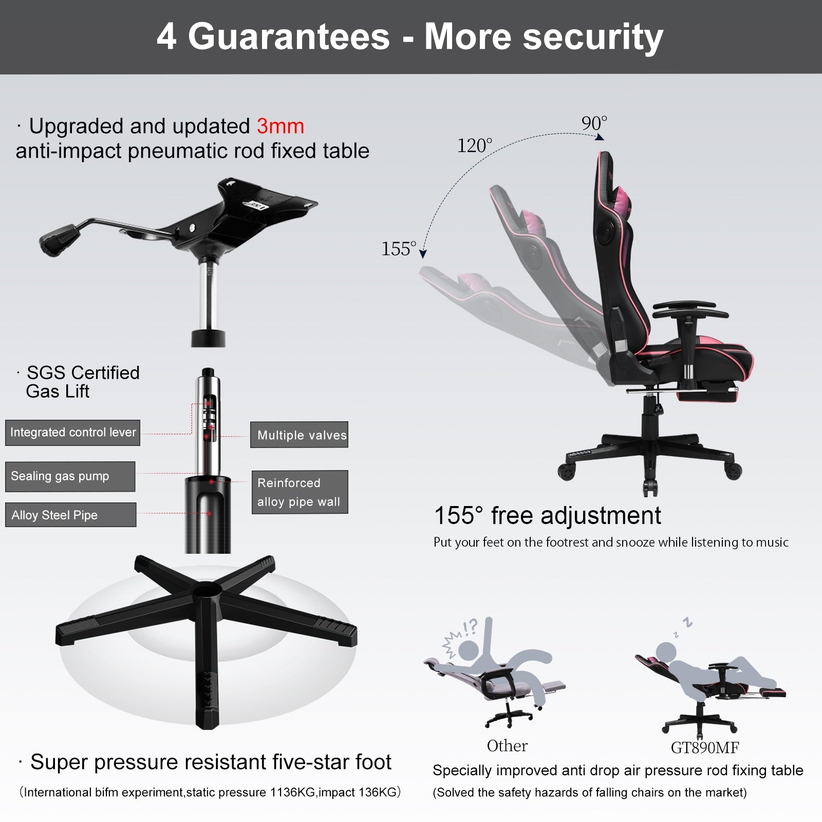 Height of seat can be adjusted to meet the needs of members of different heights in your family.If you are prone to soreness after long term gaming or working, there is no doubt that our 890MF will solve your worries.