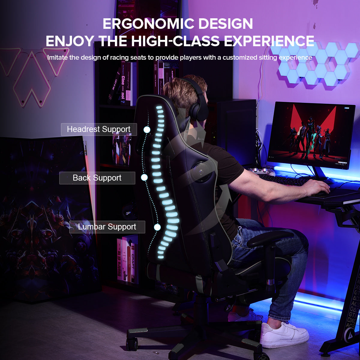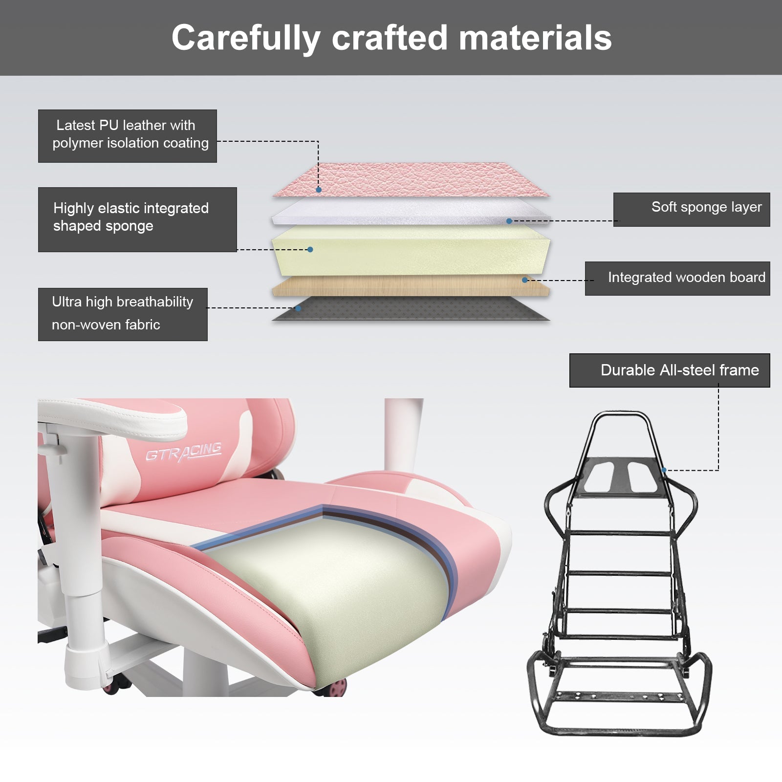GTRACING upgraded the chair with 2 Bluetooth speakers. Take you into a more realistic virtual world and immerse you in it. While enhancing the gaming experience, it alleviates the damage to the player's hearing from the headphones.