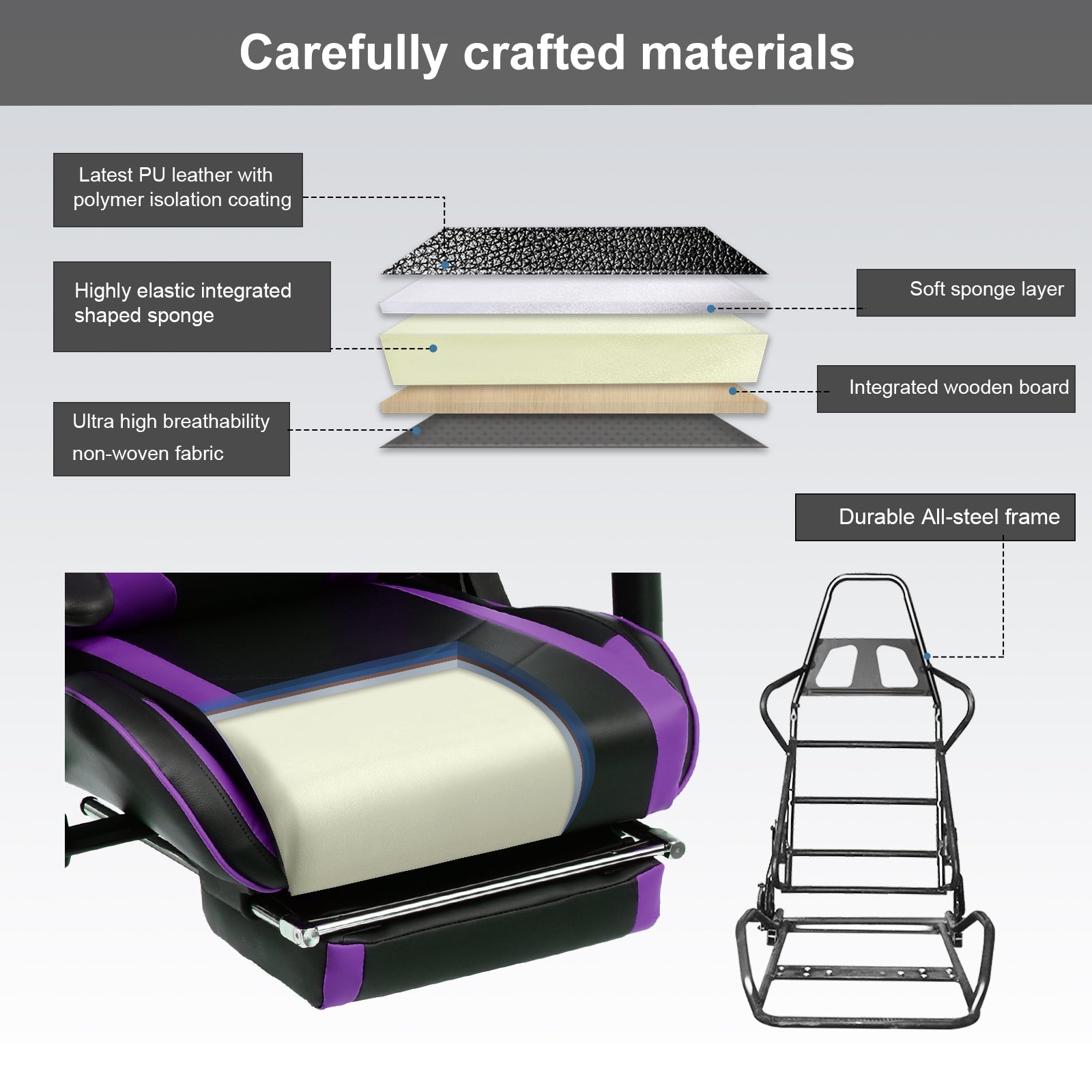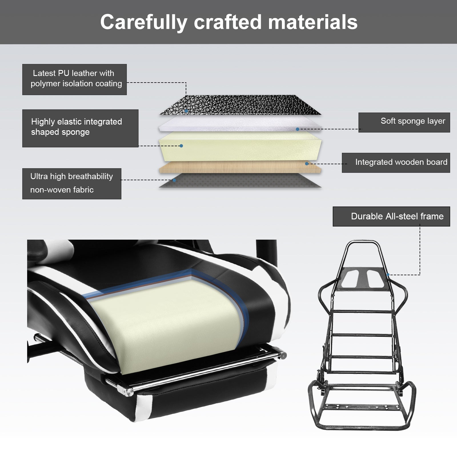 The chair takes a design inspired by sports car seats and incorporates ergonomics. The great value steel construction and class IV lifting mechanism guarantee strength durability and long service life.