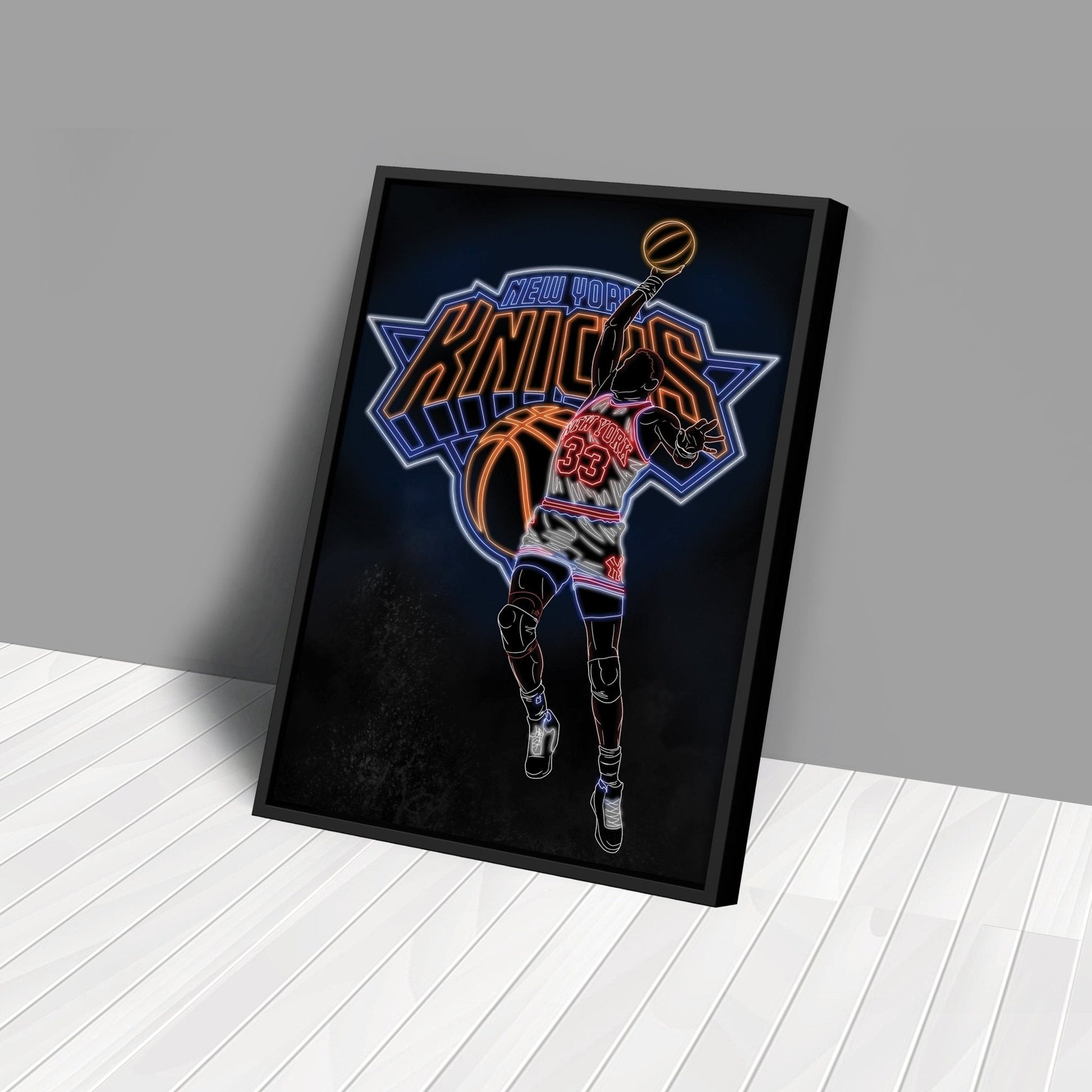 Patrick Ewing Neon Canvas Art | Knicks Wall Decor