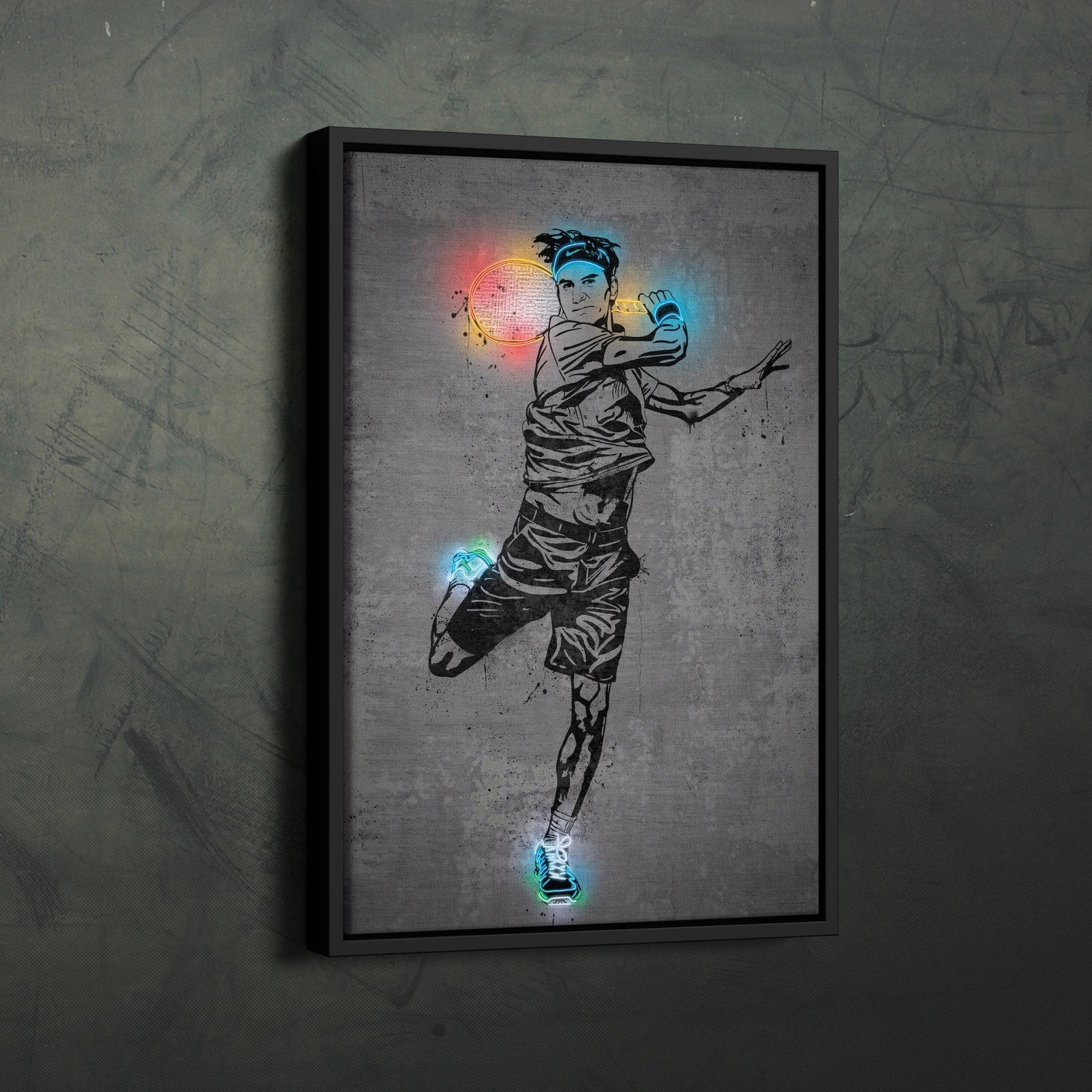 Roger Federer Neon Canvas Art | Modern Wall Decor for Tennis Fans