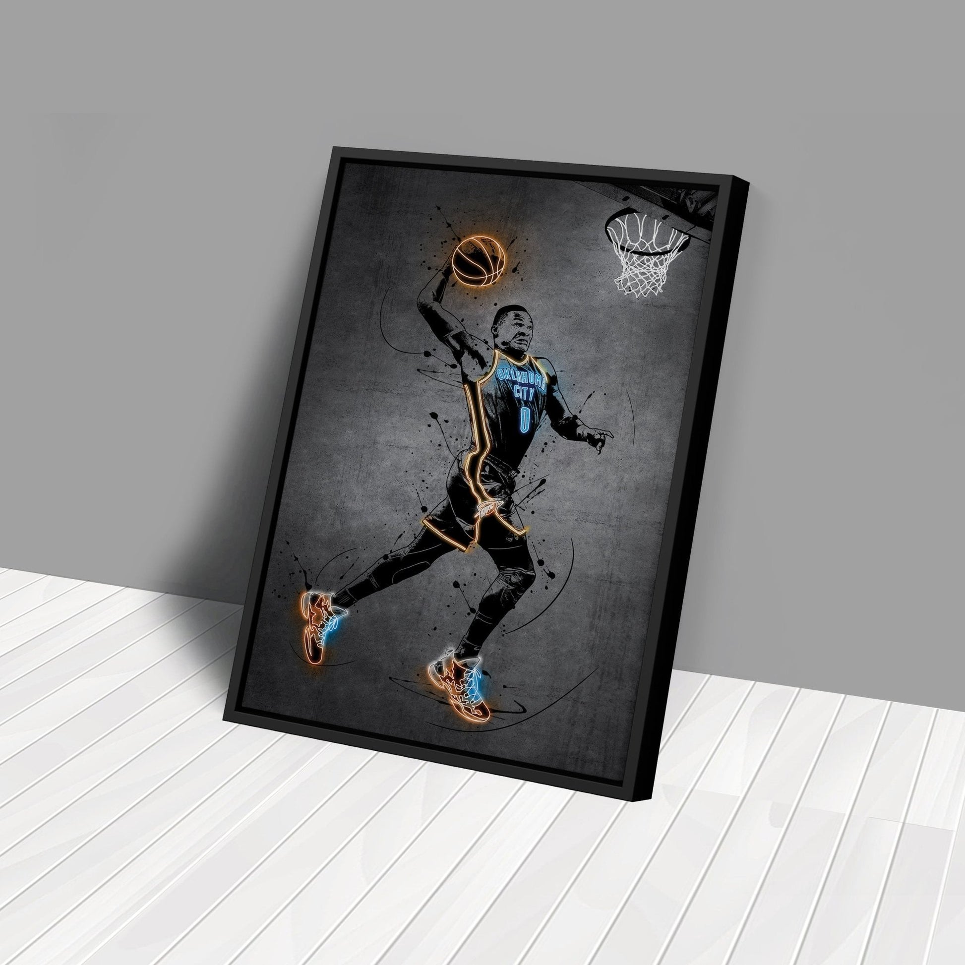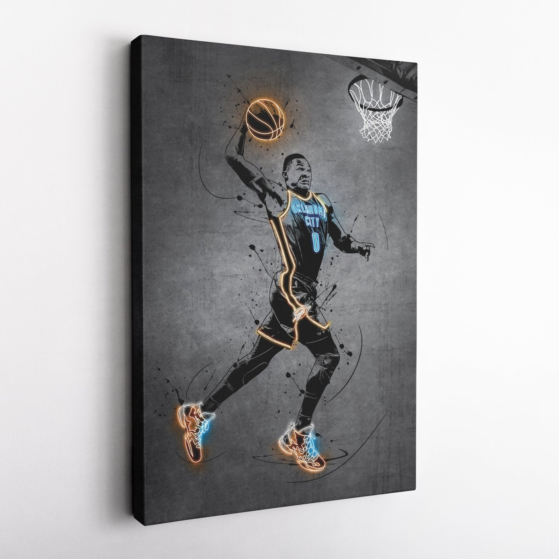 Russell Westbrook Neon Canvas Art | Modern Wall Decor for Thunder Fans