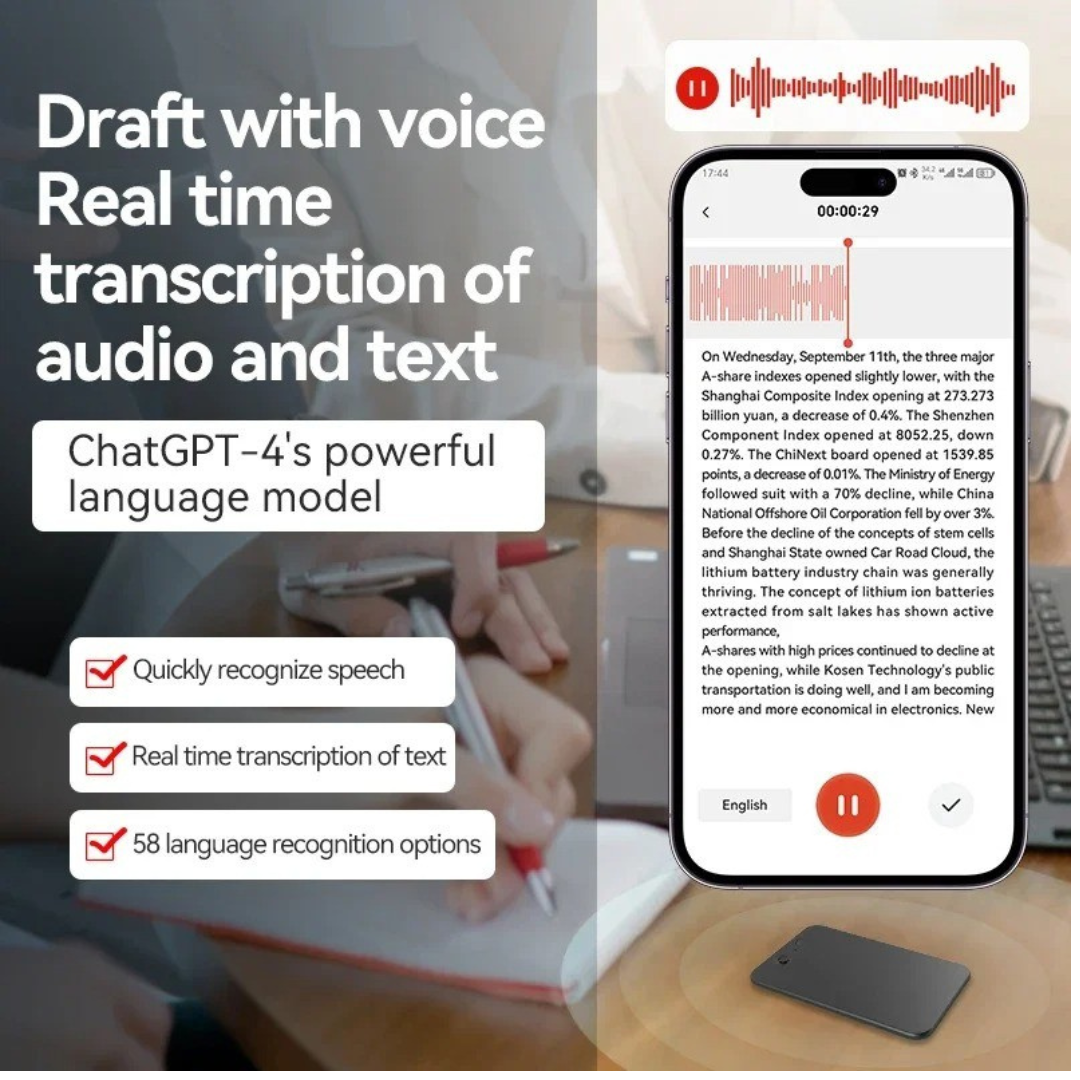 Experience seamless real-time transcription, 58-language support, and ChatGPT integration in an ultra-thin, portable design.