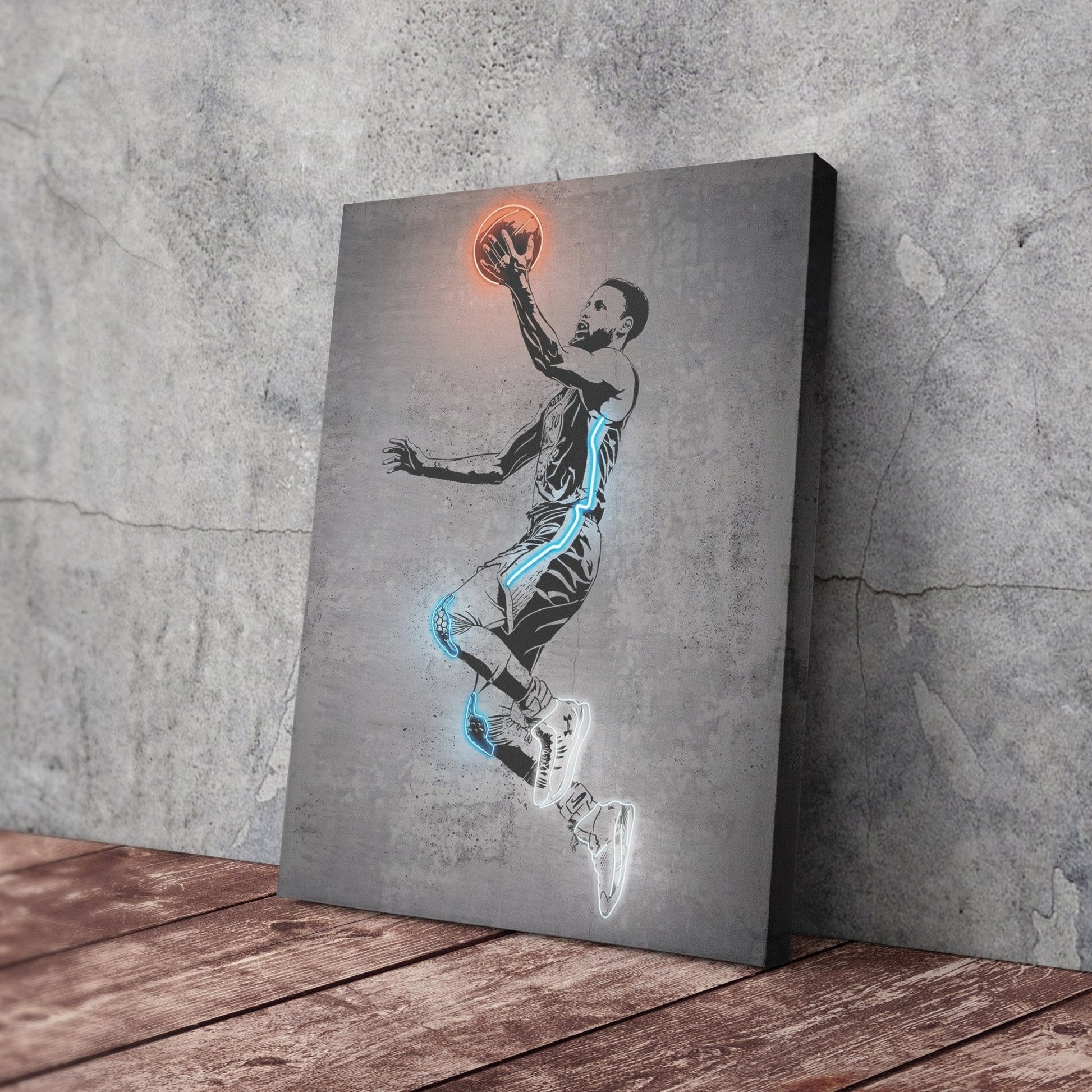 Stephen Curry Neon Canvas Art | Modern Wall Decor for Warriors Fans