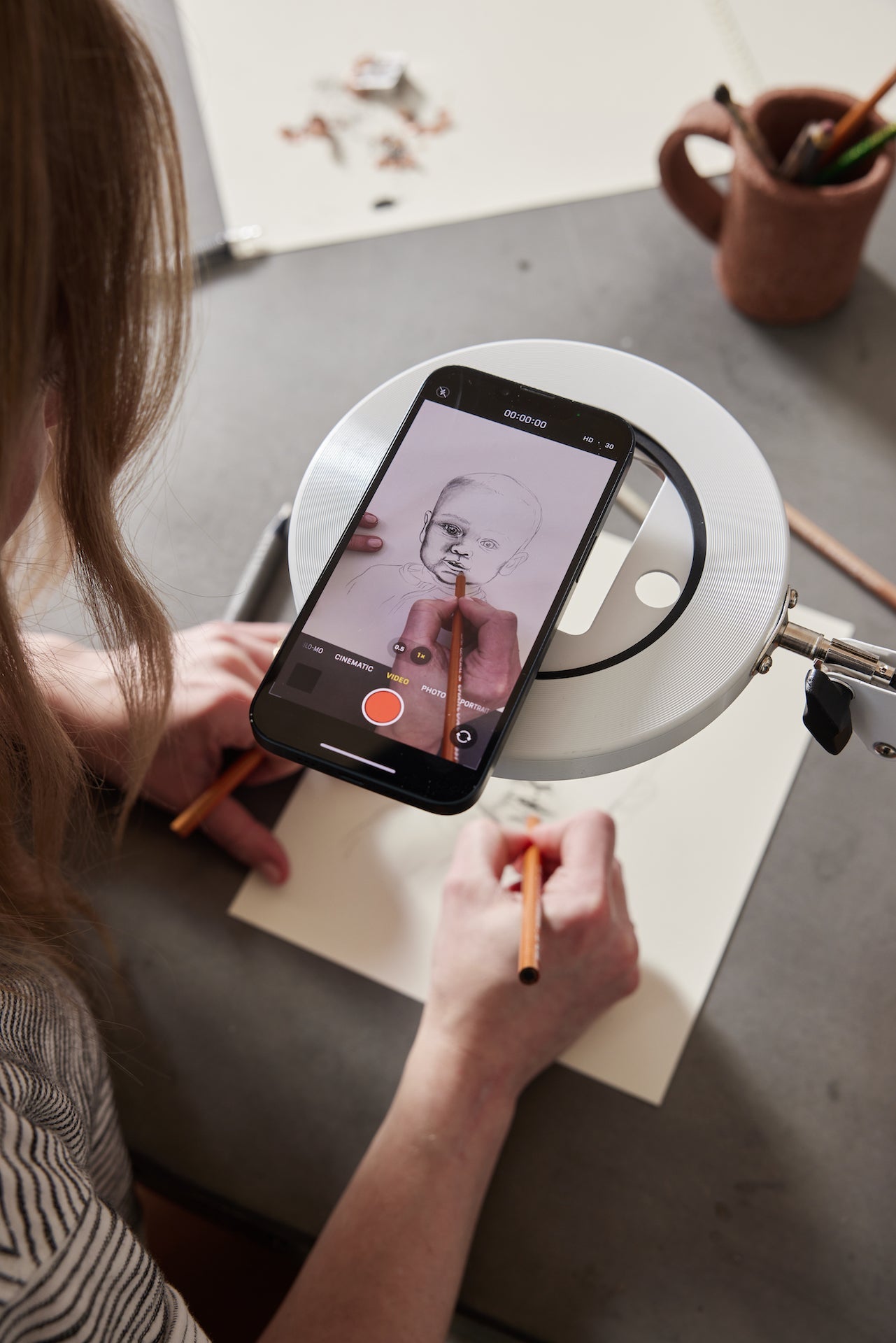 Built-in “bright and airy” ring light creates perfect lighting every time